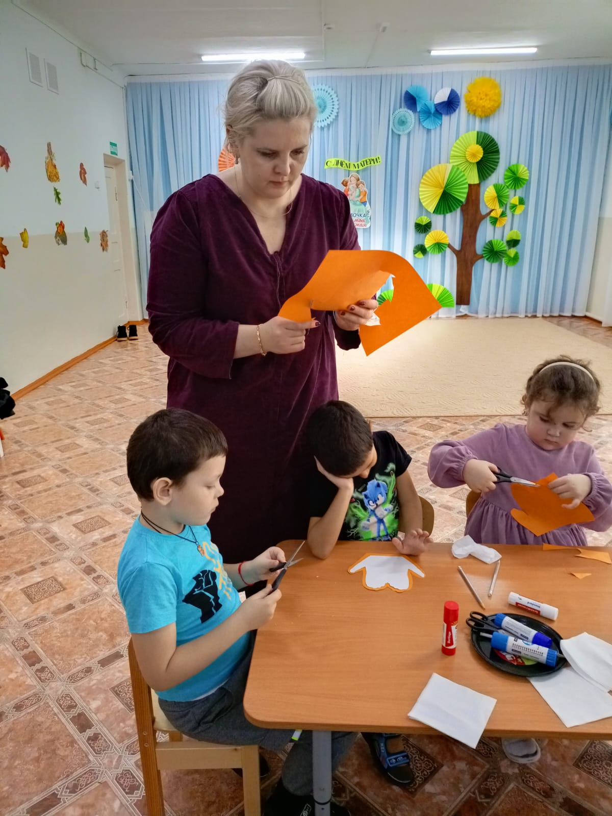 В преддверии праздника - Дня матери для воспитанников детского сада прошел мастер-класс " Подарок для мамы»". Дети узнали о том, что в России День Матери отмечают в последнее воскресенье ноября. В 2025 году этот праздник выпадает на 30 число. Мама – самый важный человек в нашей жизни и наш лучший друг, защитник, учитель, к которому мы идём за советом в трудную минуту и на которого мы можем положиться всегда и во всём! День матери – это замечательный, светлый и долгожданный праздник, в который дети любят преподносить своим мамам сюрпризы. А самый лучший подарок, как известно, тот, что сделан своими руками и от всей души! Затем мальчишки и девчонки с удовольствием мастерили открытку с объемным ярким цветком из бумаги. В ходе мастер-класса ребята вели беседу о самых дорогих, родных и любимых мамах, рассказывали про них: как их зовут, какая у них профессия, какие они любимые и добрые. Внутри каждой открытки для мам было написано пожелание. Ребята вложили в неё не только мастерство и терпение, но и талант, фантазию и, конечно же, любовь к родному человеку. Все участники мастер-класса получили массу эмоций и хорошее настроение.