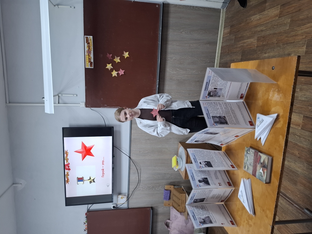 Библиотекари рассказали о значении Дня героев Отечества и о том, почему важно помнить и уважать подвиги тех, кто ценой своей жизни защищал Родину. Рассказ библиотекарей сопровождался электронной презентацией с показом видео фильма об истории праздника. В рамках мероприятия были представлены материалы и воспоминания о героях Великой Отечественной войны, чьи подвиги навсегда остались в истории страны. Много стихотворений посвящено героям Отечества, из читали: Пыцак Софья, Лепская Татьяна, Дышеков Ильяс. Далее участники узнали о наших земляках воинах-интернационалистах о тех, кто прошел через горькие испытания афганской войны, проявляя стойкость и мужество в сложных условиях горных и пустынных районов. Особое внимание было уделено героям Чеченских конфликтов — людям, которые проявили героизм в условиях локальных войн, защищая свою Родину и своих близких. Также была представлена информация о современных героях — участниках специальной военной операции (СВО), которые продолжают защищать нашу страну в настоящее время.
