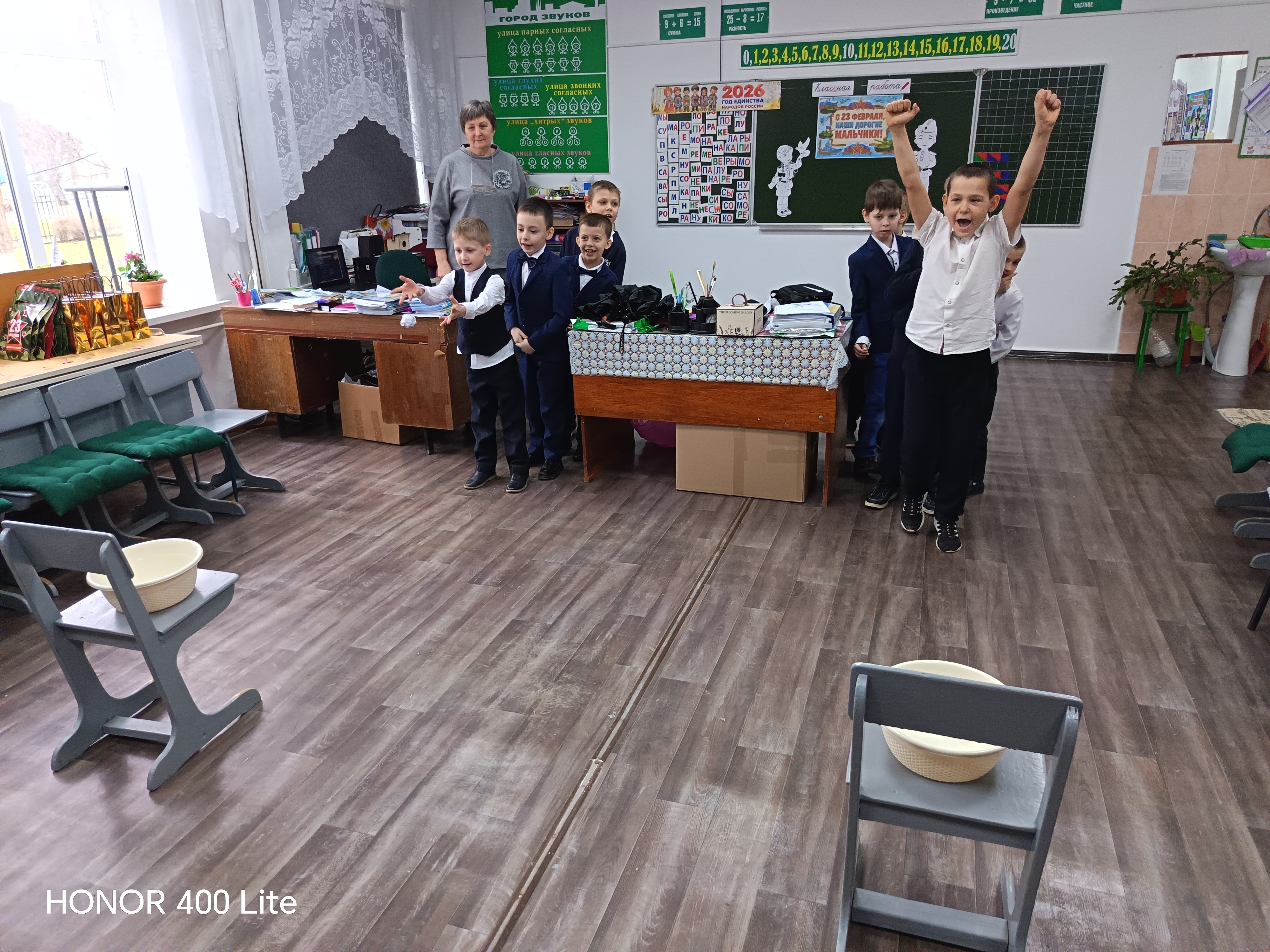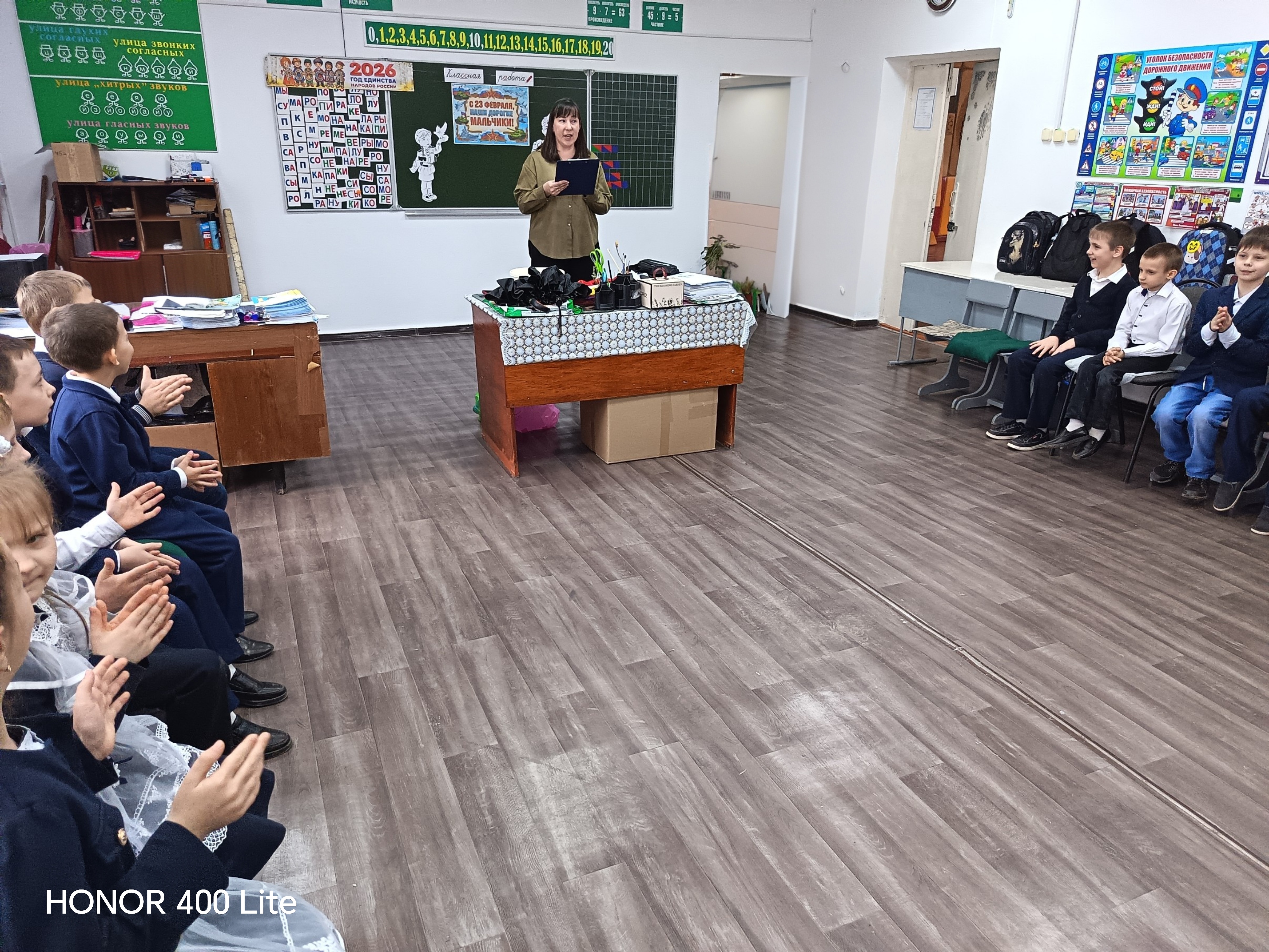 Ко Дню Защитника Отечества для учеников 1 класса (кл.рук. Жужолева И.В.) сотрудники библиотеки провели игровую конкурсную программу «Аты – баты!...