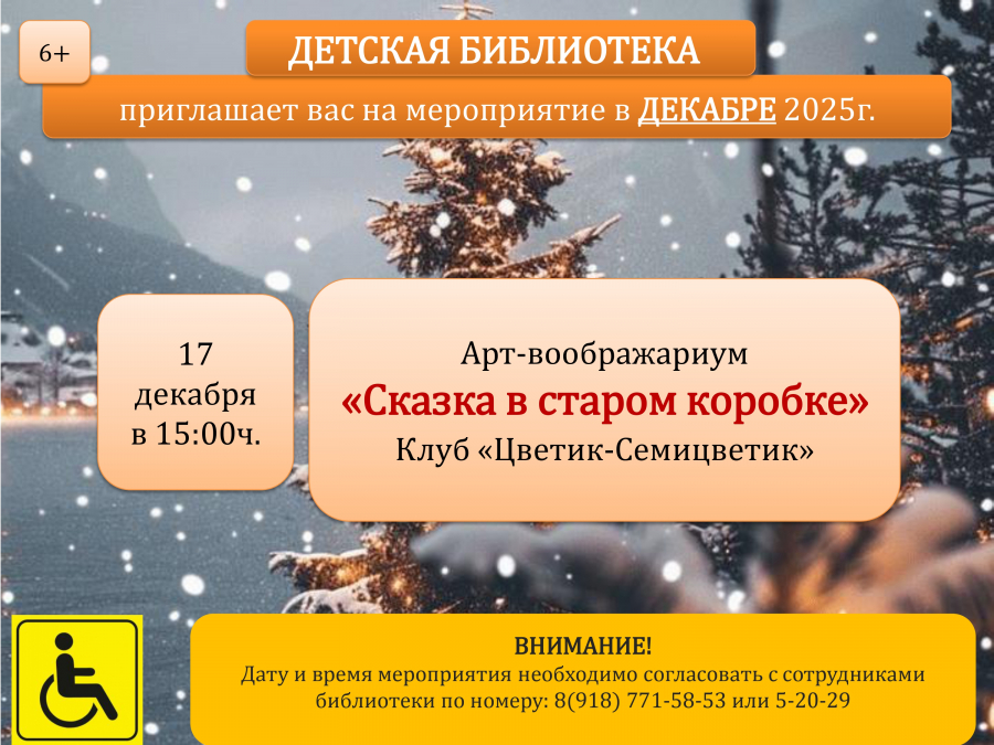 Вы находитесь здесь:Главная|ДОСТУПНАЯ БИБЛИОТЕКА. Мероприятия для граждан с ОВЗ|Арт воображариум "Сказка в старом коробке"