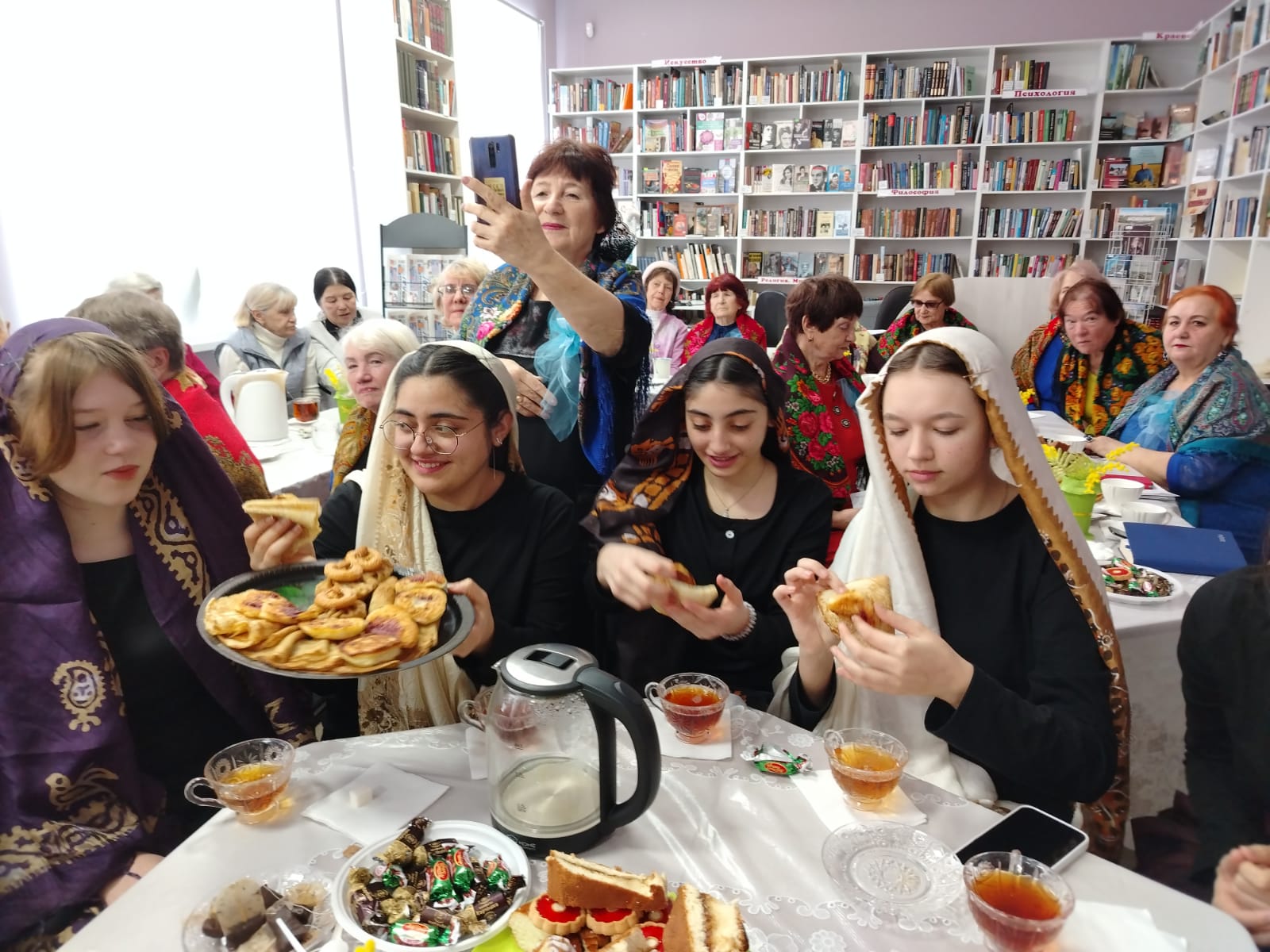 С незапамятных времен все женщины носят платки, их любили и царицы, и крестьянки. Платок – это по-настоящему самобытный и оригинальный аксессуар. Ни одно гуляние, ни один обряд или хоровод не обходились без нарядного, узорчатого платка. В честь традиционного женского наряда 27 февраля – четверг, четвертый день масленичных гуляний и называется он «Разгуляй, или Широкий четверг», в Центральной библиотеке с. Дивное на заседании клуба «Добрые встречи» проведен фольклорный праздник «Платков и шалей пестрый хоровод».