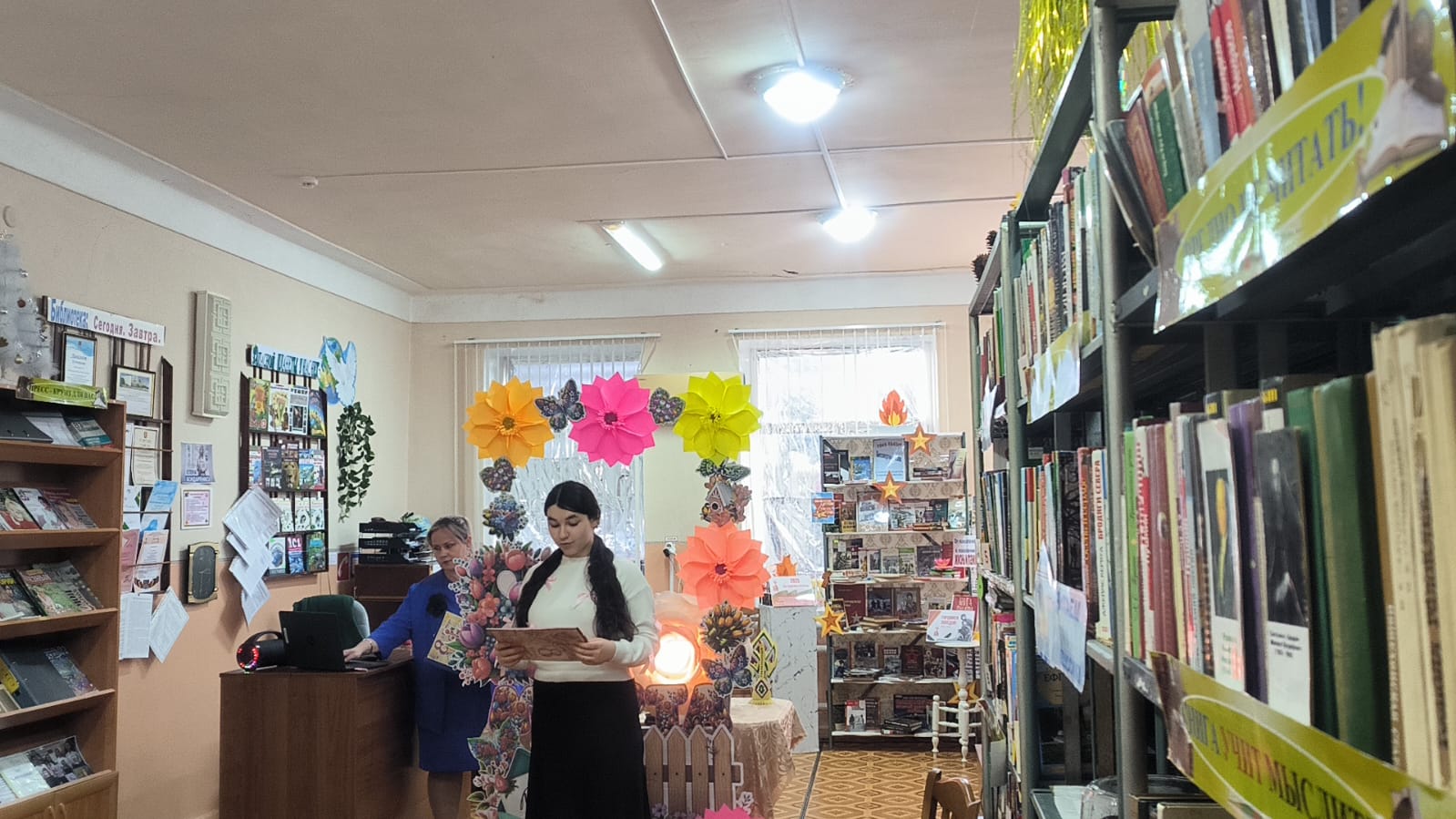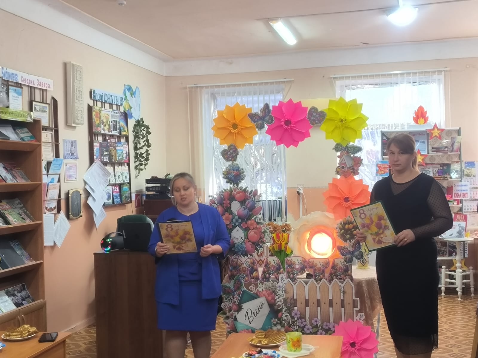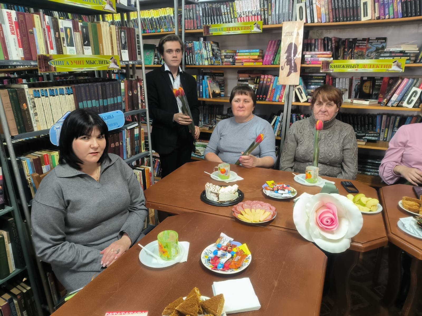 «Живите сердцем!» под этим названием в Апанасенковской сельской библиотеке прошло праздничное мероприятие в честь жен и матерей участников специальной военной операции, приуроченное к международному женскому дню 8 марта. 06 марта специалисты библиотеки совместно с сотрудниками дома культуры подготовили литературно – музыкальную встречу, создавшую теплую атмосферу, подарив участникам мероприятия возможность отвлечься от повседневных забот и почувствовать поддержку. Для поздравления дорогих женщин слово предоставили члену совета «Женщины России» и начальнику территориального отдела села Апанасенковского Мардвинцевой Н.Я., участникам волонтерского движения Поправка Д. и Аполонскому Т. (ученики 10 кл.), а ученицы 6 класса исполнили для гостей музыкальную композицию «Мама» и зачитали стихотворение о бабушке. Чтобы порадовать и объединить присутствующих библиотекарь Капшук Н.В. с ребятами 6 кл. организовала мастер – класс по изготовлению тюльпанов из бумаги, которые после подарили приглашенным гостям. Ведущие встречи сумели создать теплую, проникновенную атмосферу. В знак признательности и уважения волонтеры культуры подарили женщинам цветы. #МЫВМЕСТЕ #8Марта