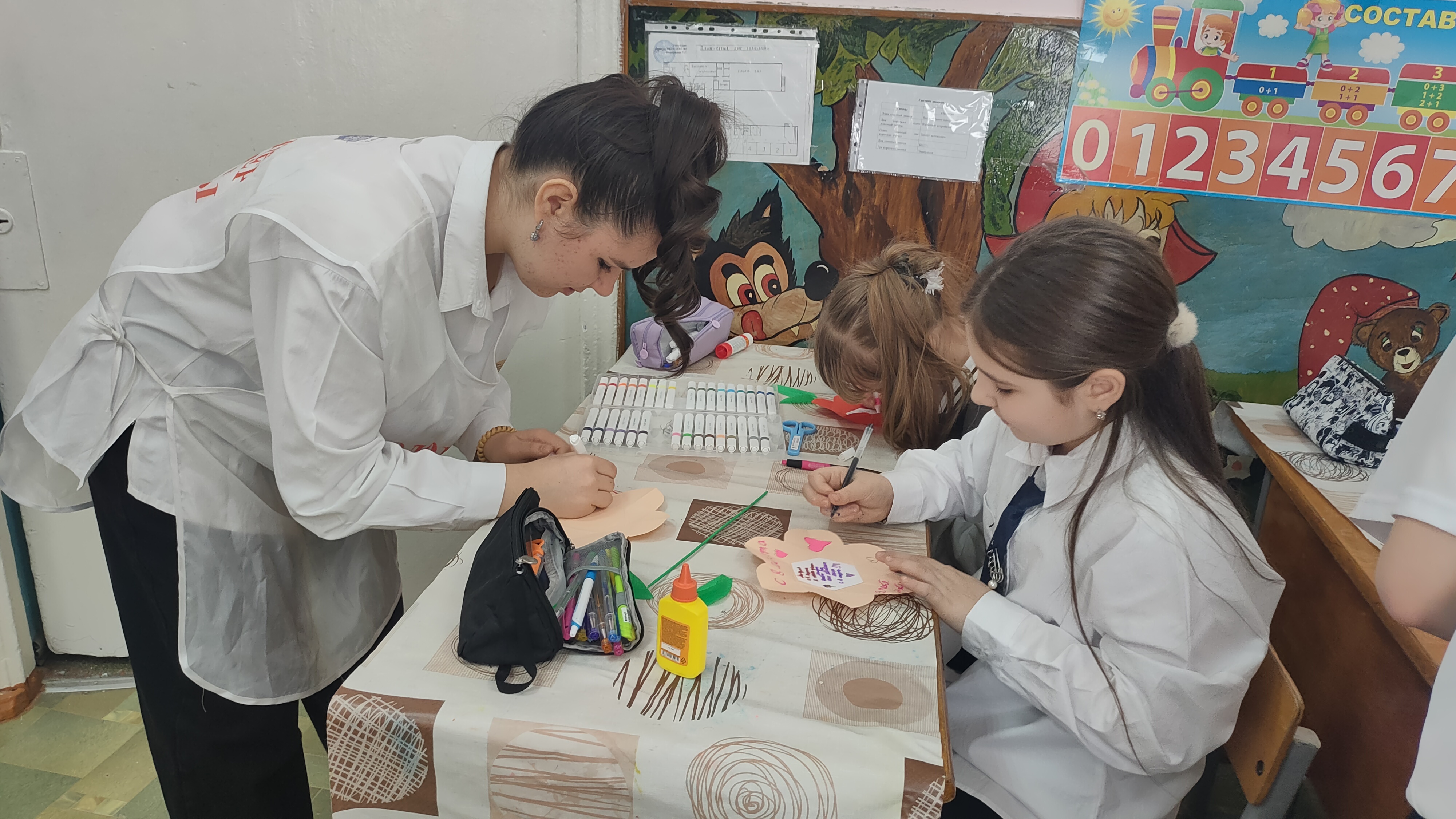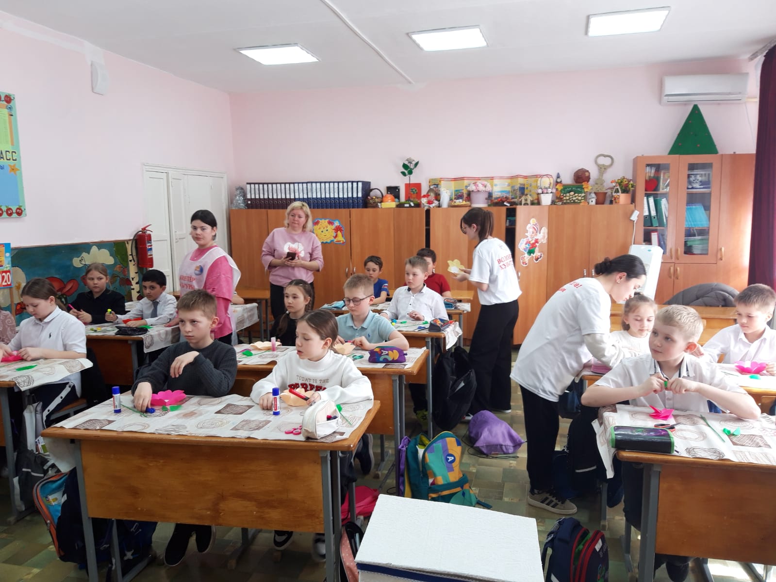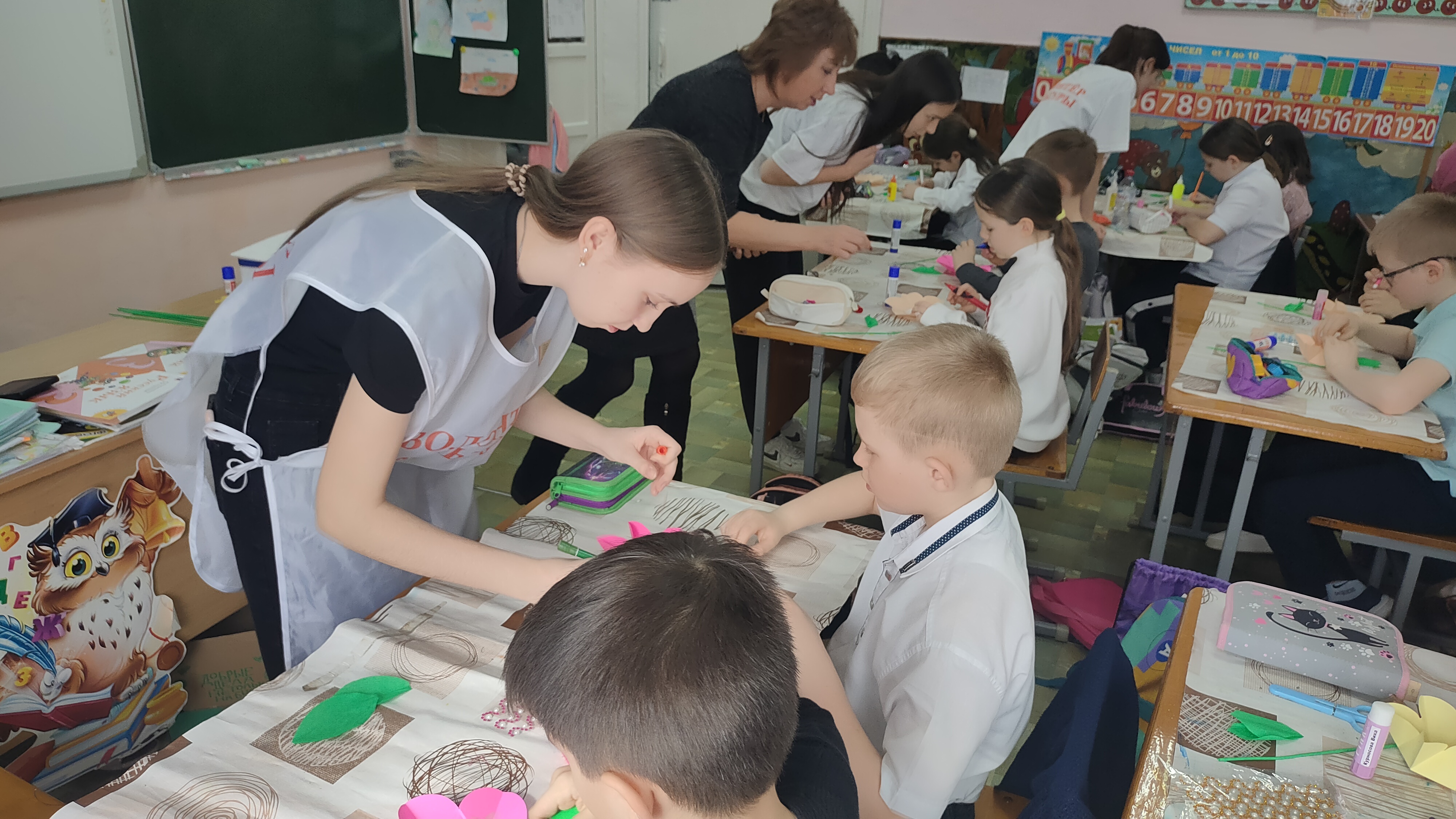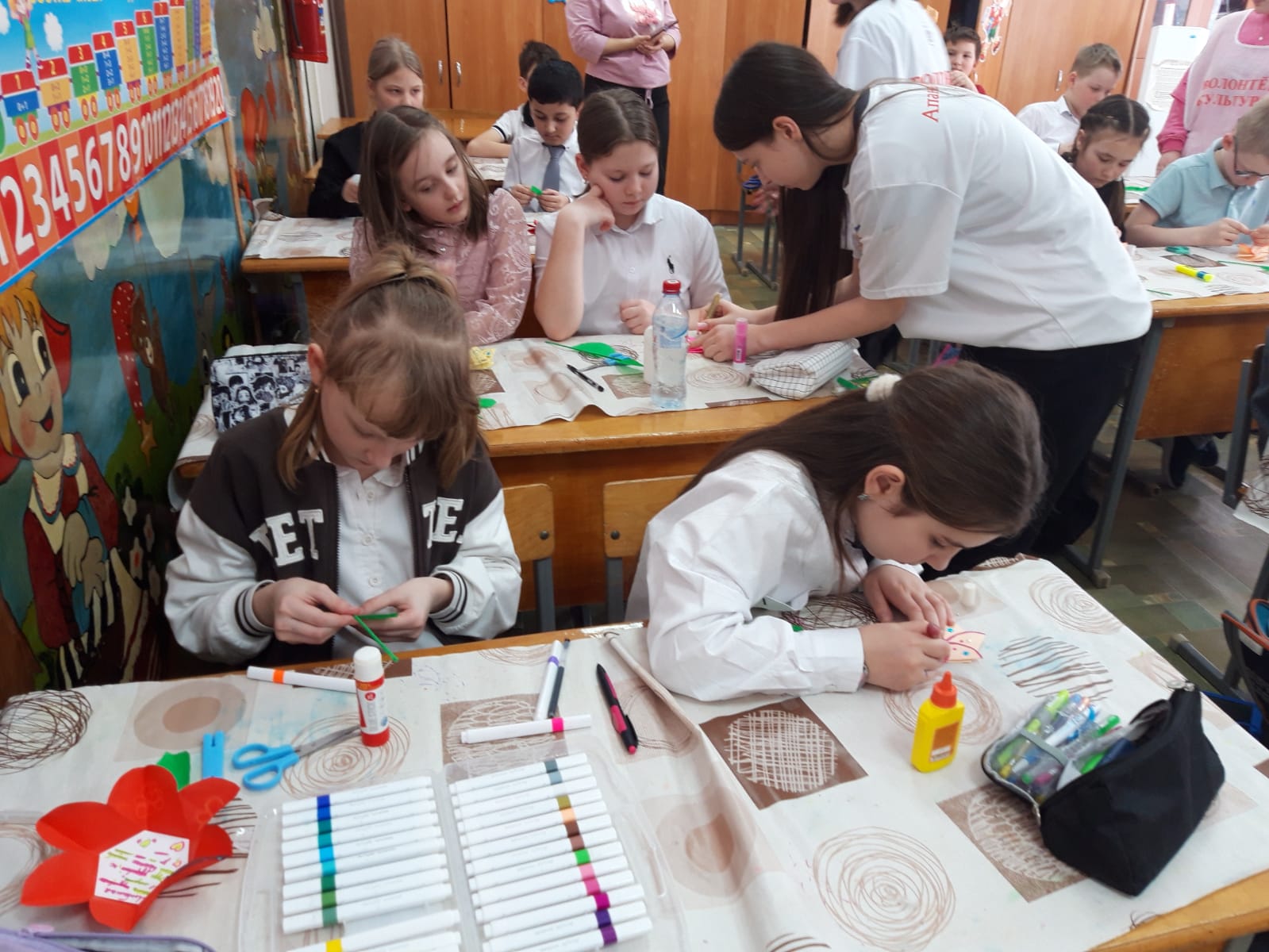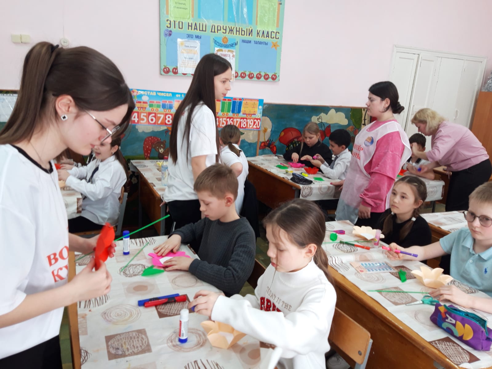 В ходе мероприятия обучающиеся 3 класса МКОУ СОШ № 1, под руководством старших наставников изготовили из картона, страз, цветной и жатой бумаги, подарки для самых любимых и родных людей. Открытка, сделанная своими руками - прекрасный подарок для мамы, бабушки или сестры в Международный женский день.