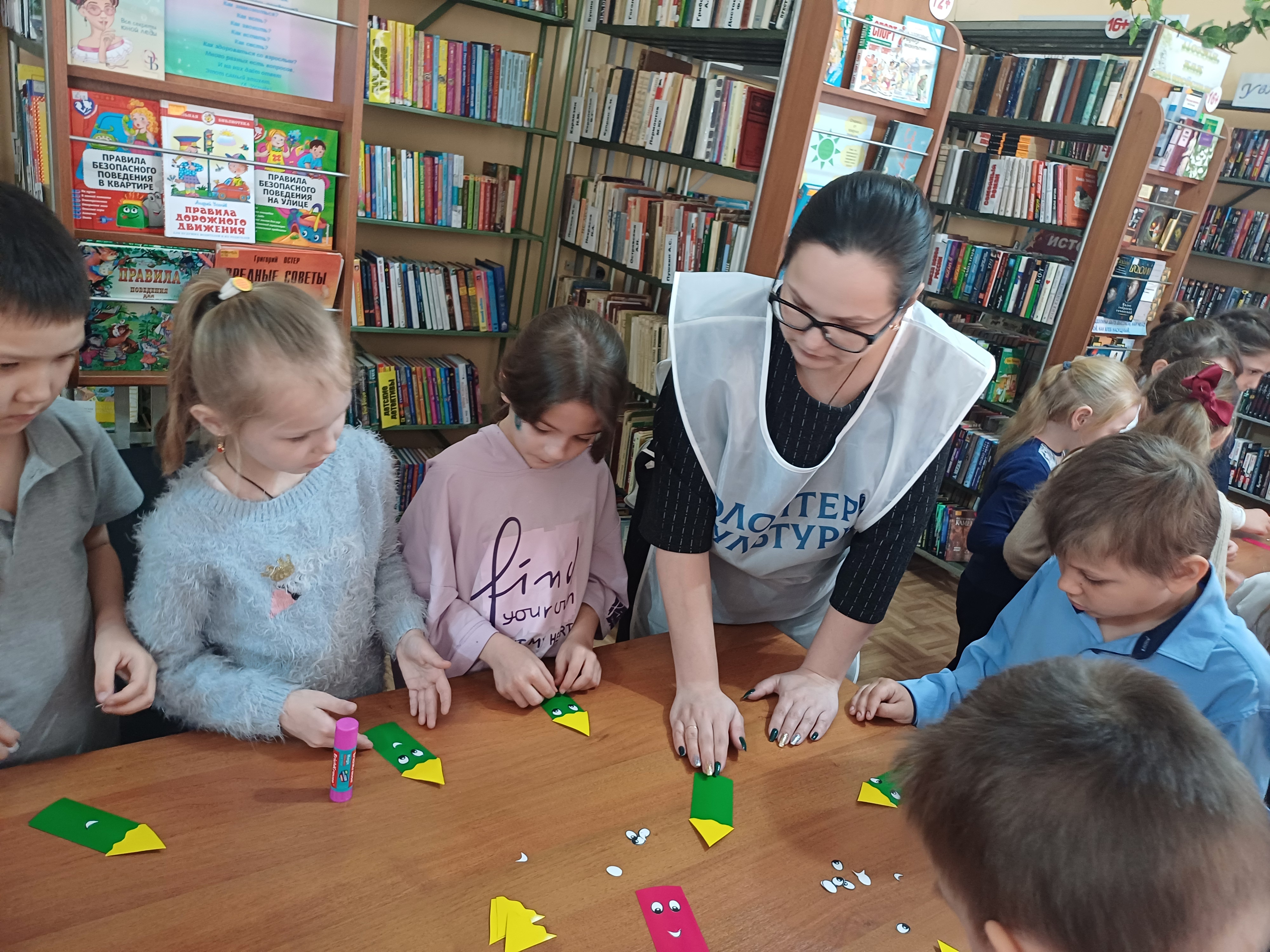 В библиотеке состоялось традиционное посвящение первоклассников в читатели библиотеки «Первый шаг в книжную вселенную». Библиотекари в игровой форме познакомили детей с правилами библиотеки и бережным отношением к книге. Ученики произнесли клятву читателя, пообещав быть настоящими друзьями с книгами. Ребята с удовольствием поиграли в развлекательные, развивающие, познавательные игры, соревновались в знании сказок и сказочных героев. Волонтёры культуры провели для них мастер класс по изготовлению книжной закладки «Я красивая закладка, я нужна вам для порядка». После мероприятия мальчишки и девчонки ещё долго и с большим удовольствием выбирали себе книги, обследовали все уголки библиотеки, пересмотрели детскую литературу и журналы. Эмоции переполняли, ведь теперь они настоящие читатели, которые знают правила библиотеки и умеют обращаться с книгой! В заключение праздника библиотекари поздравили ребят и пожелали первоклассникам интересного путешествия в мир книг и знаний. Мероприятие проводилось в рамках библиотечного проекта «Библиокомпас».
