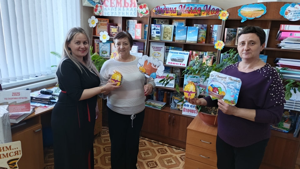 Апанасенковская сельская библиотека совместно с работниками ДК провела пасхальные встречи «Пасха – светлый праздник», посвященные празднованию православного праздника - Пасха. В ходе встречи гости мероприятия с интересом прослушали информацию об истории праздника Светлой Пасхи, о пасхальных традициях и обычаях наших предков, сохранившихся до наших дней. Как нужно к нему готовиться, почему принято дарить крашеные яйца, кому было подарено первое яйцо. Затем последовали обсуждения и дополнения. Каждый рассказал, как отмечает этот праздник в своей семье. Говорили о том, какие блюда подаются на пасхальный стол, поделились друг с другом рецептами пасхальной выпечки и оригинальными способами покраски яиц. В завершении, в качестве презента, участникам был вручен пасхальный коробочек с угощениями.