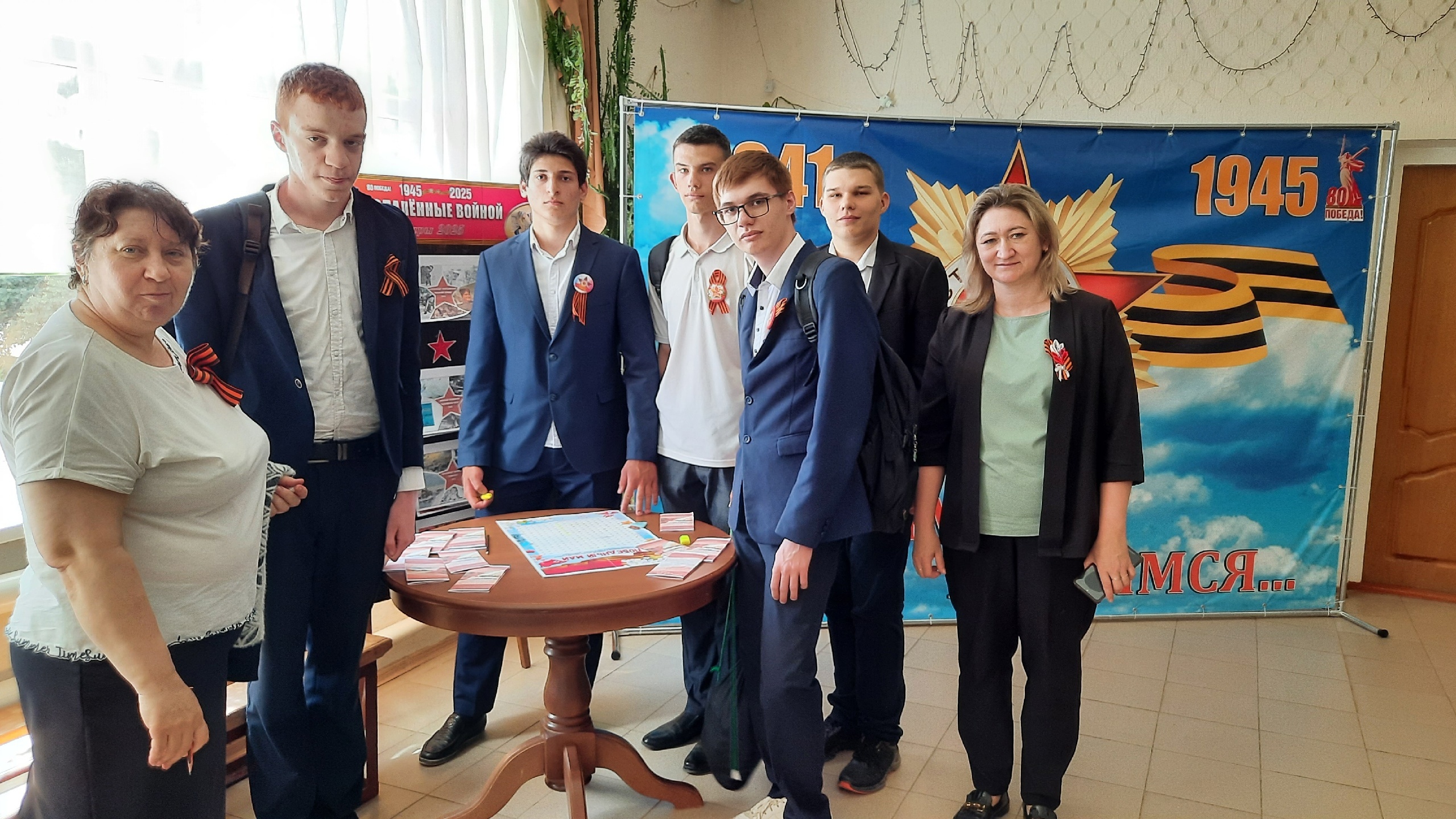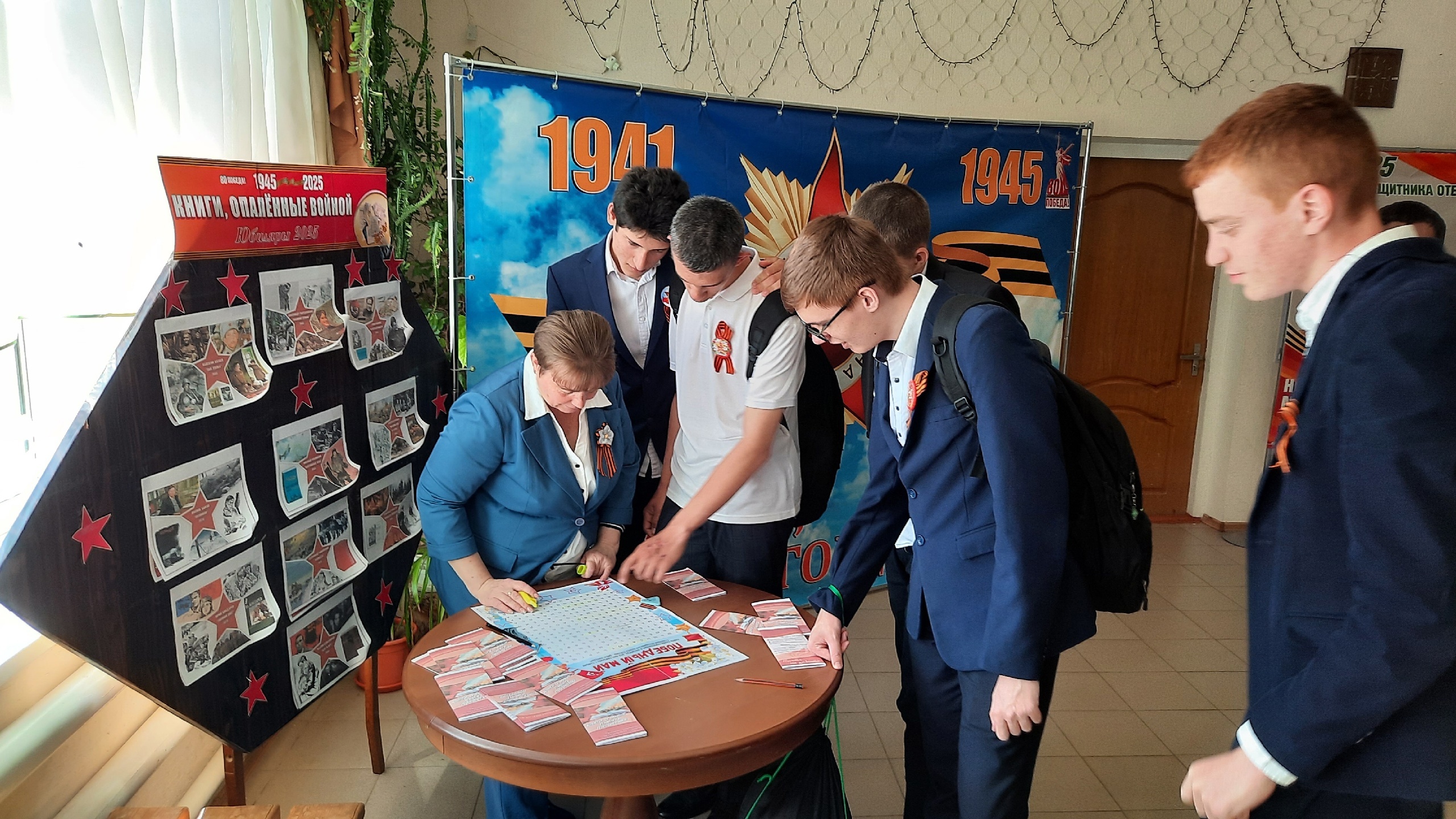 9 Мая остается одним из самых главных праздников в сердцах многих людей. Дорогой ценой досталась нам эта Победа. И очень важно, чтобы мы никогда не забывали тех, кто отдал свои жизни за нашу Родину. 7 мая 2025 года в преддверии празднования 80 - летия Великой Победы для учащихся Воздвиженской школы №9 сотрудники библиотеки провели час памяти «Минувших лет живая память». Библиотекарь рассказала ребятам о Великой Отечественной войне, о том, как жил советский народ в это трудное время, и какие героические подвиги совершали их ровесники ради победы. Провели обзор книг военной тематики «Книги, опаленные войной», раздали буклеты «Книги о войне - память поколений». Внимание детей привлек филворд «Победный май», который они с классным руководителем разгадывали с большим интересом.
