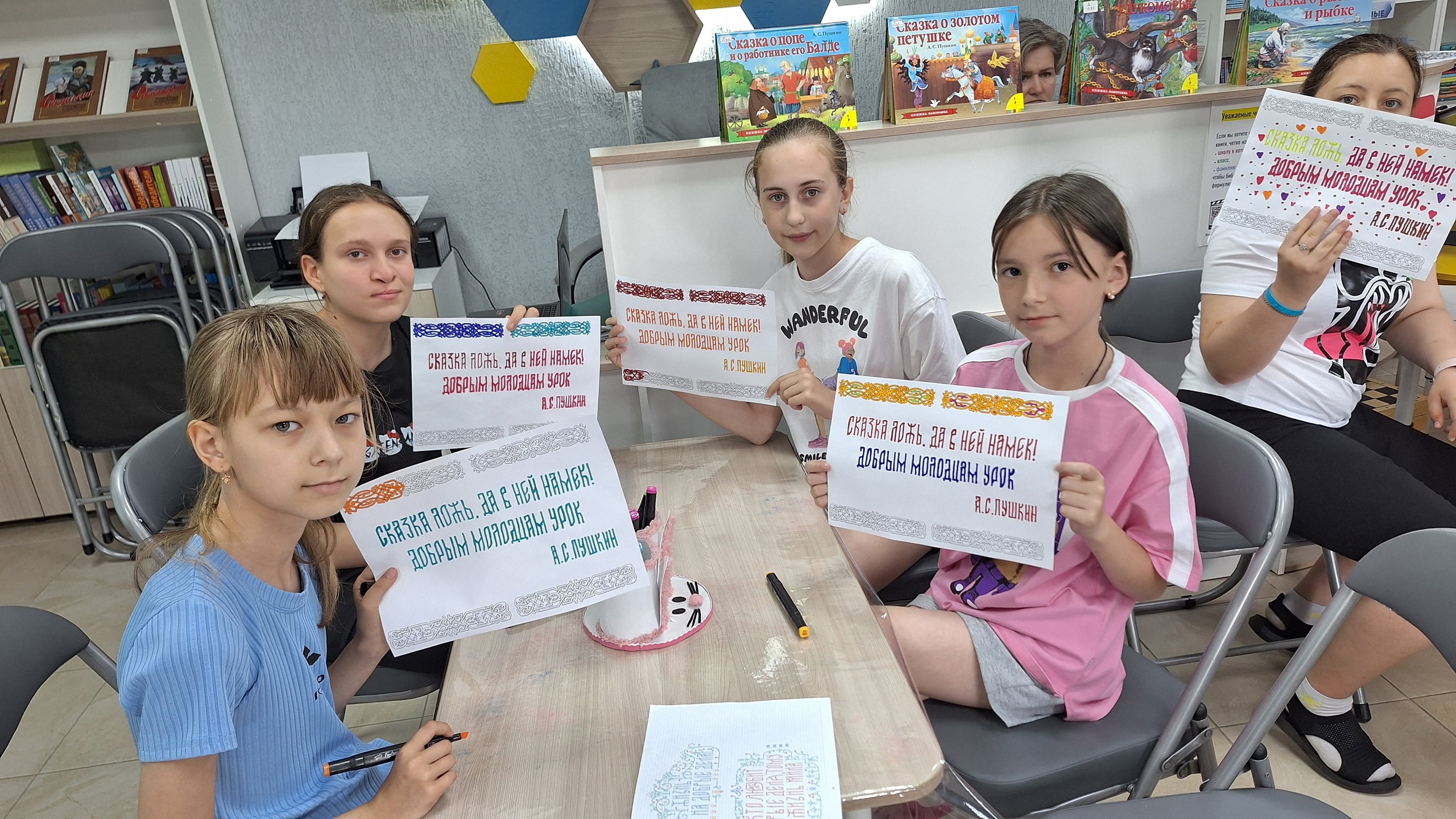 В Детской библиотеке с ребятами из детского лагеря «Тополёк» прошла увлекательная встреча, посвящённая творчеству великого русского поэта Александра Сергеевича Пушкина. Пушкин творил около двухсот лет назад, однако его произведения остаются близкими и понятными современному читателю.