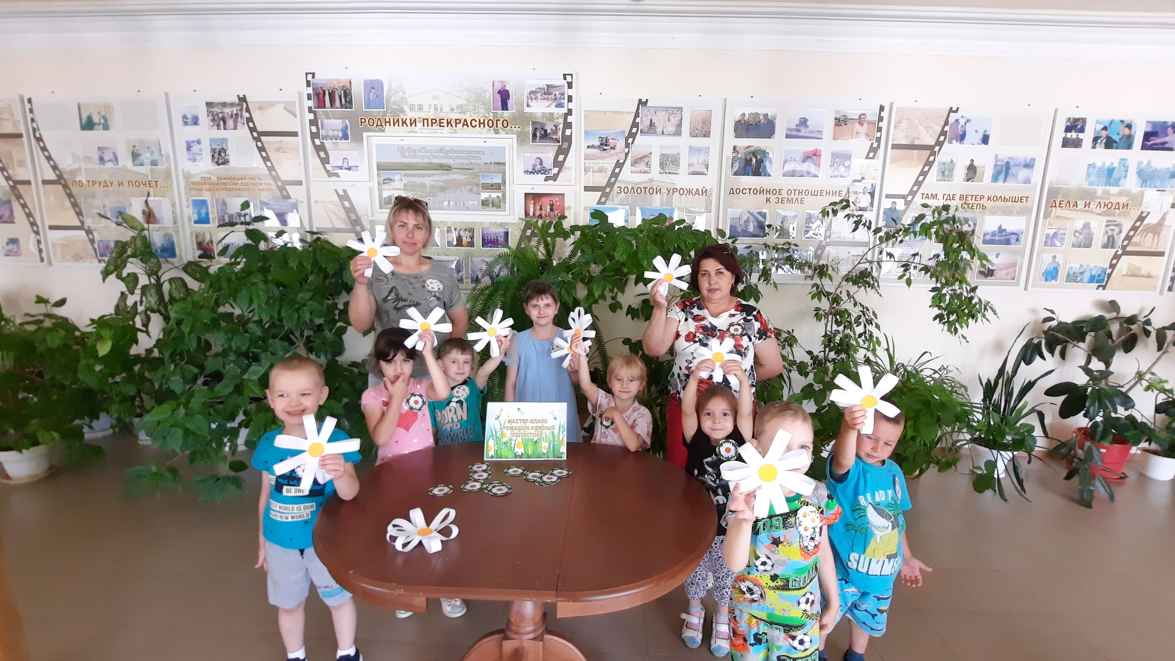 8 июля, в День семьи, любви и верности в Воздвиженской сельской библиотеке прошел мастер-класс «Ромашки нежный лепесток…». Юным творцам из детского сада с. Воздвиженского «Журавушка» библиотекарь рассказала об истории, традициях праздника, символе Дня семьи, любви и верности – ромашке и предложили изготовить ромашки из бумаги. Ребята активно участвовали в изготовлении символа праздника – ромашке. Под руководством библиотекаря юные участники мастер - класса, приложив мастерство, фантазию и любовь, изготовили объемную ромашку своими руками. Вскоре у всех желающих в руках красовались красивые ромашки. Дети получили массу положительных эмоций, узнали много нового и интересного.