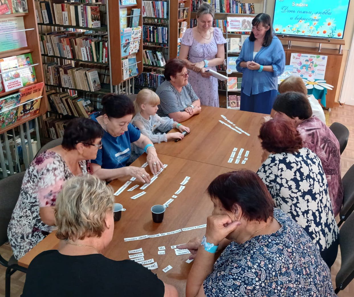 8 июля в День семьи, любви и верности в сельской библиотеке с. Вознесеновского прошло мероприятие «Семья – любви великой царство». Все присутствующие обменялись друг с другом поздравлениями и пожеланиями счастья и согласия в семьях, а библиотекарь рассказала собравшимся о происхождении праздника, напомнив легенду о муромских святых князьях Петре и Февронии. С увлечением гости учавствовали в обсуждении историй любви из прочитанных книг, читали стихи о высоких чувствах, а некоторые даже поведали личные истории о том, как встретили свою вторую половинку. Продолжилось мероприятие конкурсами: присутствующие собирали из слов известные фразы и вспоминали из какого они фильма или произведения, отвечали на вопросы, рассказывая друг другу интересные семейные истории, выбирали символы любви для своей семьи из лежащих на столе предметов, объясняя свой выбор. Завершением мероприятия стало коллективное творчество: участники нарисовали пальчиковыми красками большое дерево любви и дружбы, на ветвях которого написали пожелания для своих семей.