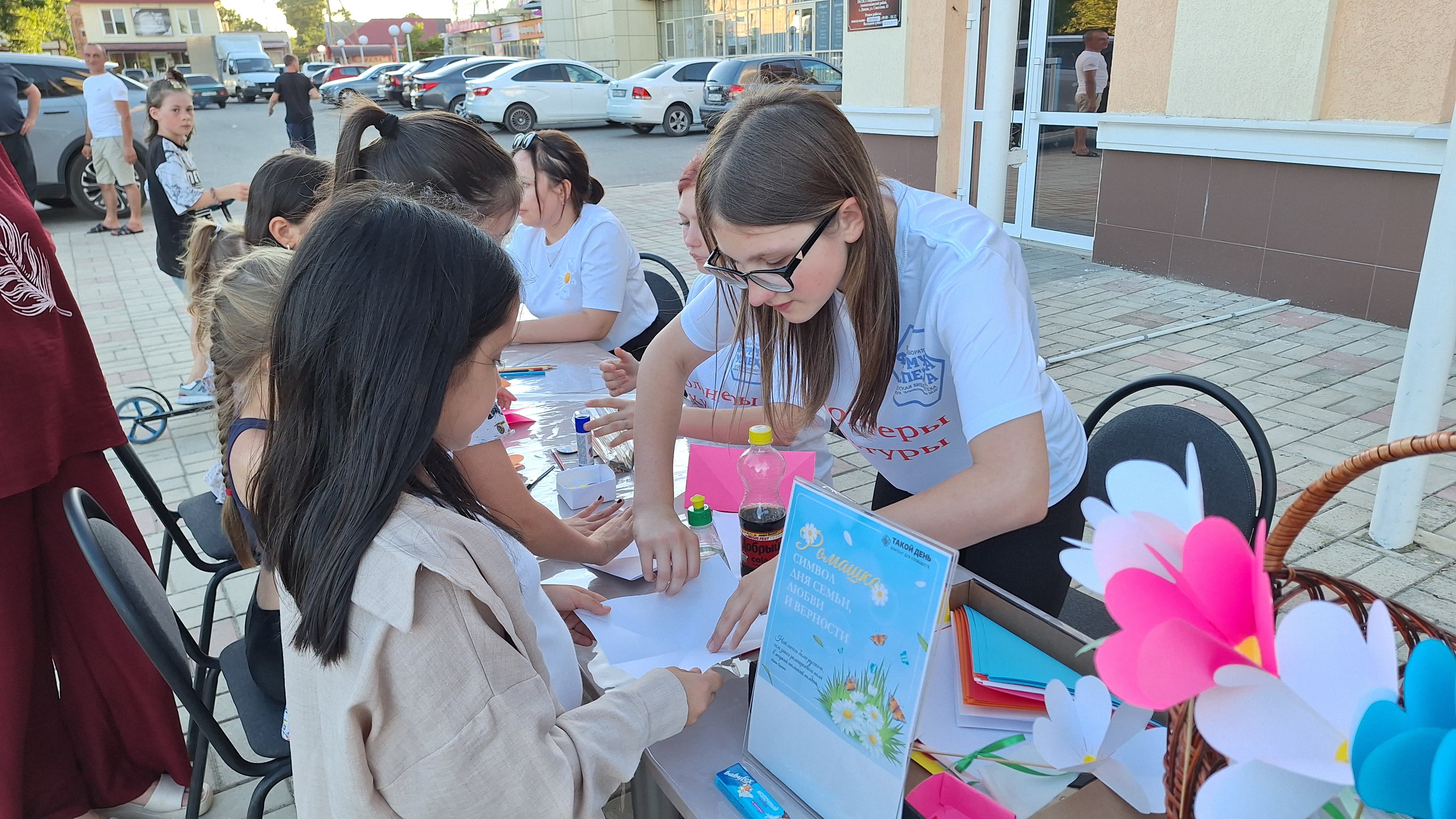 Мы не могли пройти мимо такой значимой даты и специально для юных читателей и их родителей на центральной площади детской библиотекой был организован яркий и увлекательный мастер-класс под названием «Цветочный секрет».