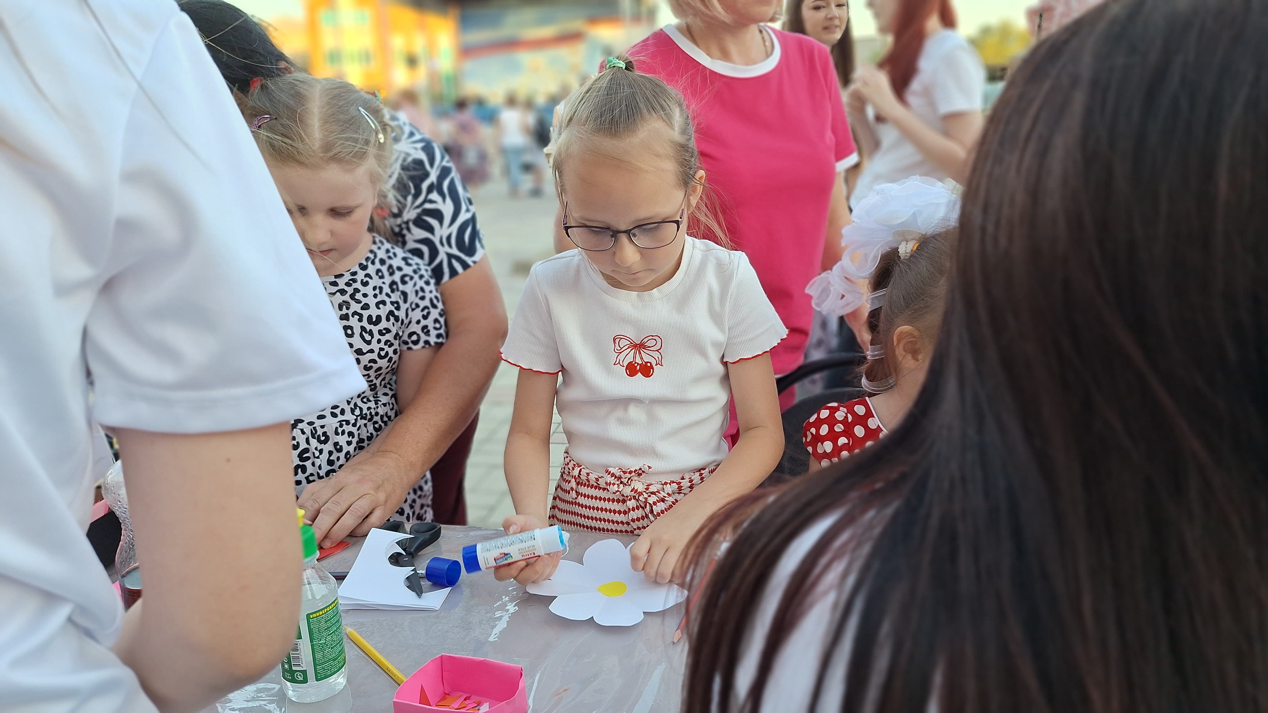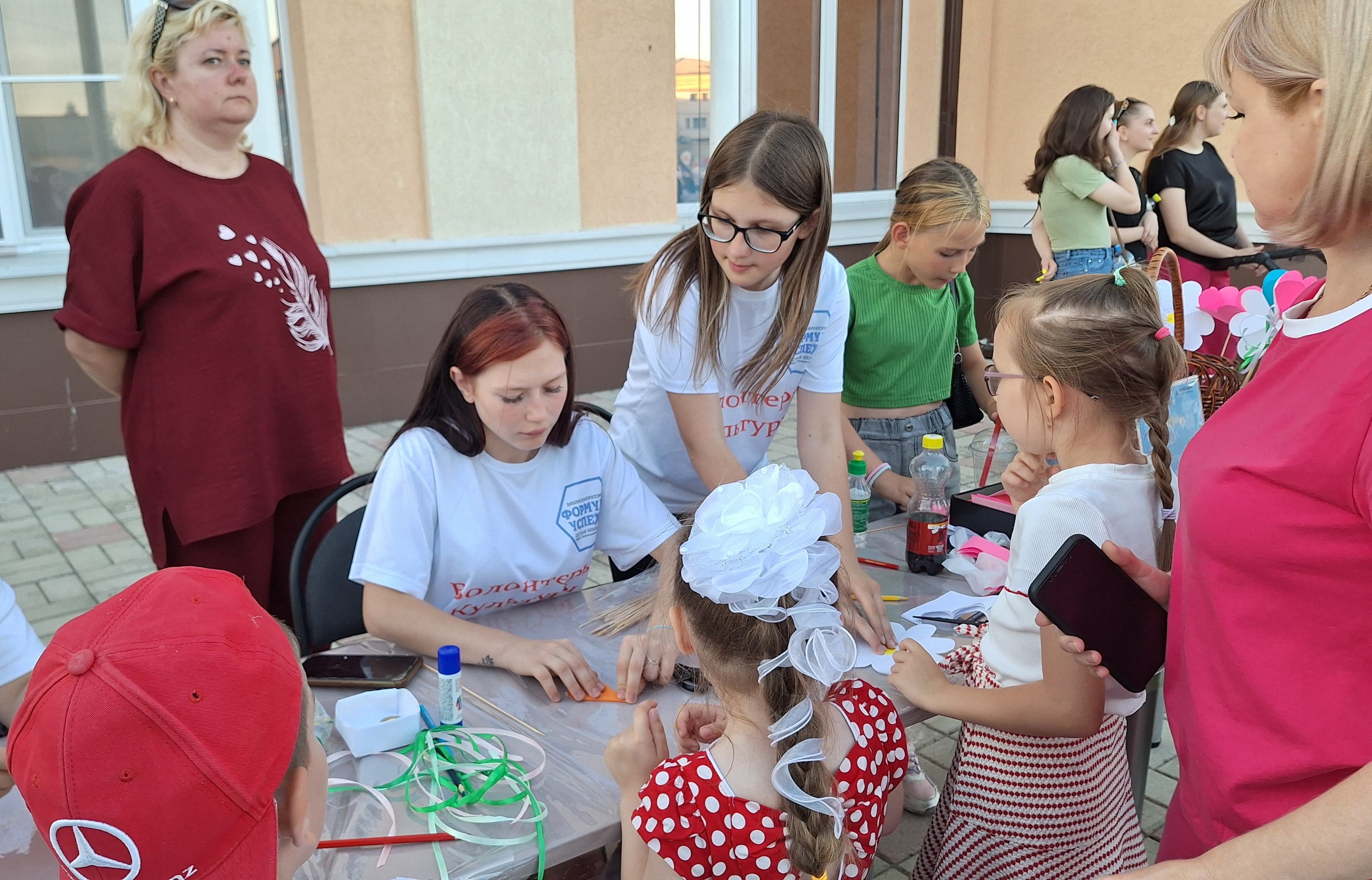 Волонтеры культуры Маша Дьяченко и Аля Гафонова объясняли участникам, как изготовить этот необычный цветок, помогали малышам складывать заготовки и предлагали украсить их творческие работы яркими ленточками или надписями с пожеланиями.