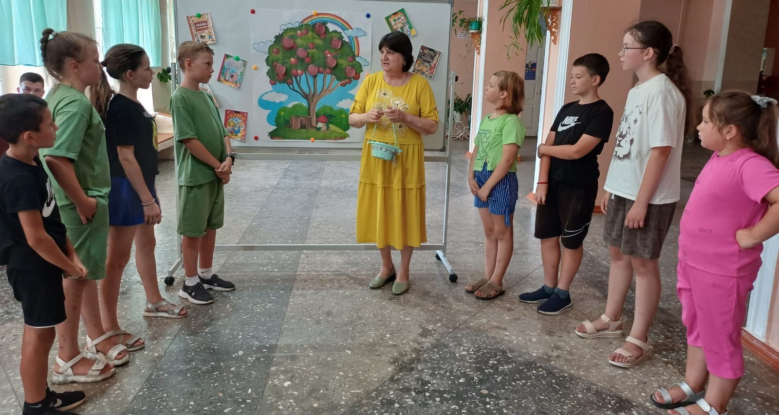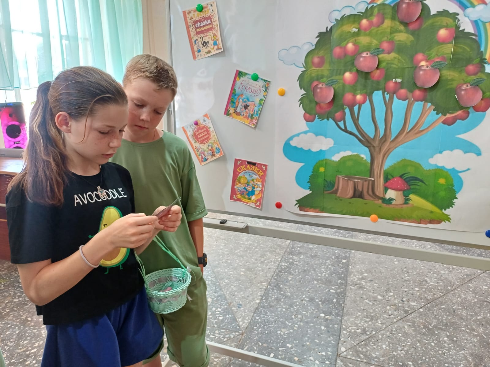 «Народных сказок хоровод» - так называлась литературная горница для детей из школьного лагеря «Солнышко». Ребята оживленно вспоминали сказки, выполняя увлекательные задания: они угадывали названия сказок по первому слову, а в игре «Сочинялка» с азартом подбирали рифмы, дополняя строки из известных сказочных произведений. Во время увлекательной викторины «Яблоня сказок» дети срывали с дерева яблоко, на обратной стороне которого было спрятано задание: текст из сказки, название которой нужно было угадать. В завершение мероприятия ребята с задором и смехом сыграли в веселую и динамичную игру «Гуси-лебеди», которая подарила всем море положительных эмоций.