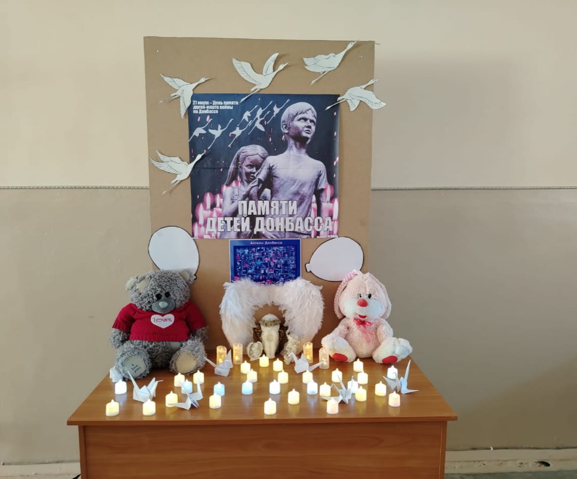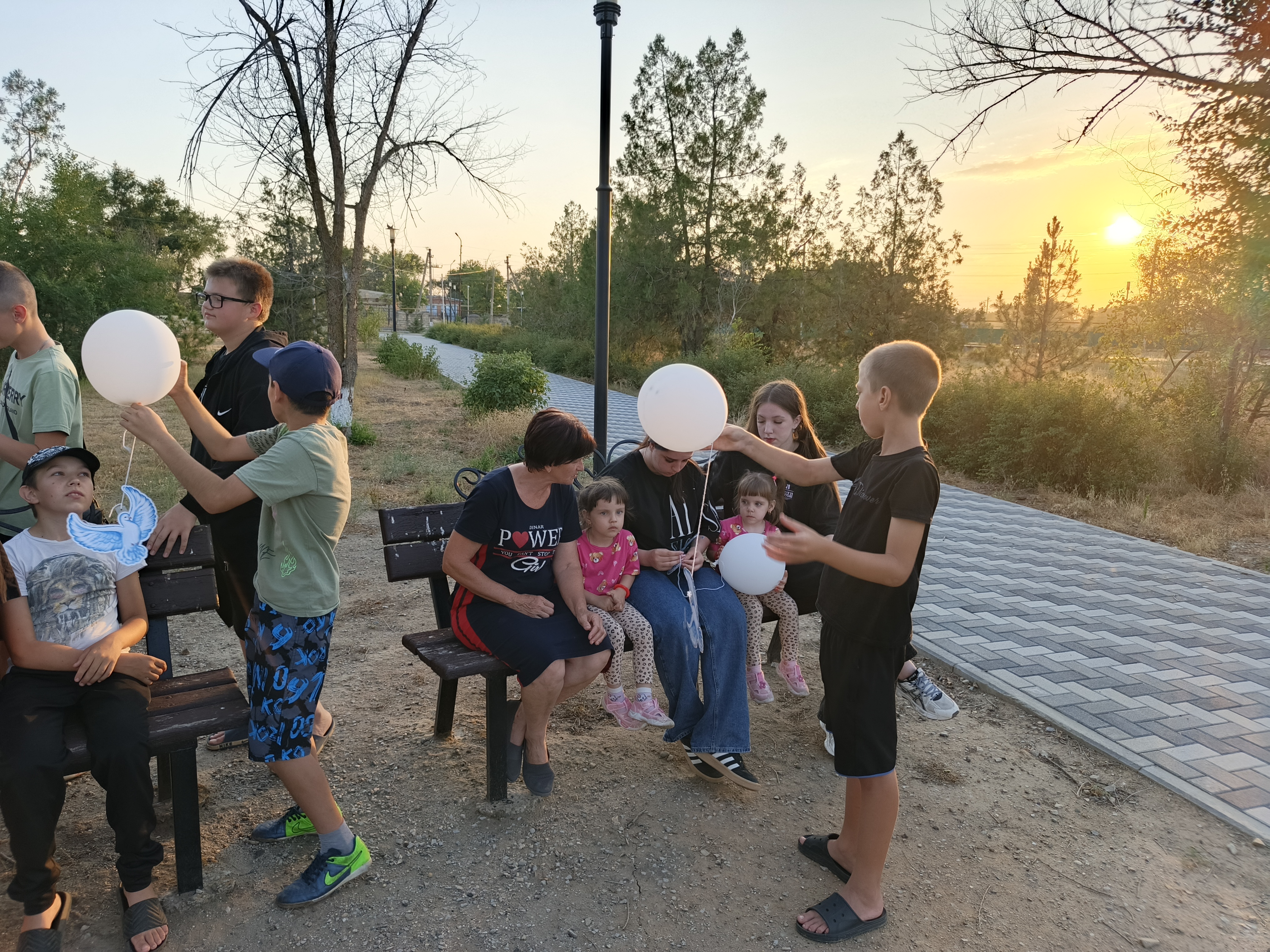 Сельская библиотека села Апанасенковского провела акцию памяти «Ангелы Донбасса». Посетив площадь на территории памятника села Апанасенковского, участники мероприятия прослушали о печальных событиях, связанных со смертью детей во время военного конфликта, начиная с 2014 года и по сегодняшний день. В память о погибших детях-жертвах войны в Донбассе ребята подготовили бумажных голубей, которых запустили в небо с помощью белых шаров, как детский символ надежды, и память о безвременно ушедших ангелов Донбасса, у которых агрессоры украли детство и юность, отобрали жизнь (белые шары символизировали ангела хранителя для ребенка). В конце мероприятия присутствующие почтили память погибших детей минутой молчания и зажгли свечу памяти.