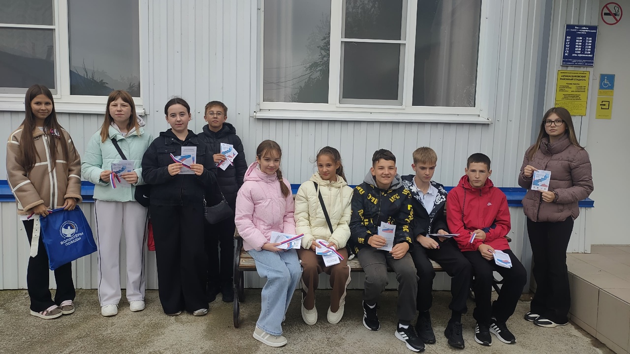 Волонтёры вышли на улицы села, чтобы напомнить жителям о важности этого исторического события и укрепить чувство единства и патриотизма.