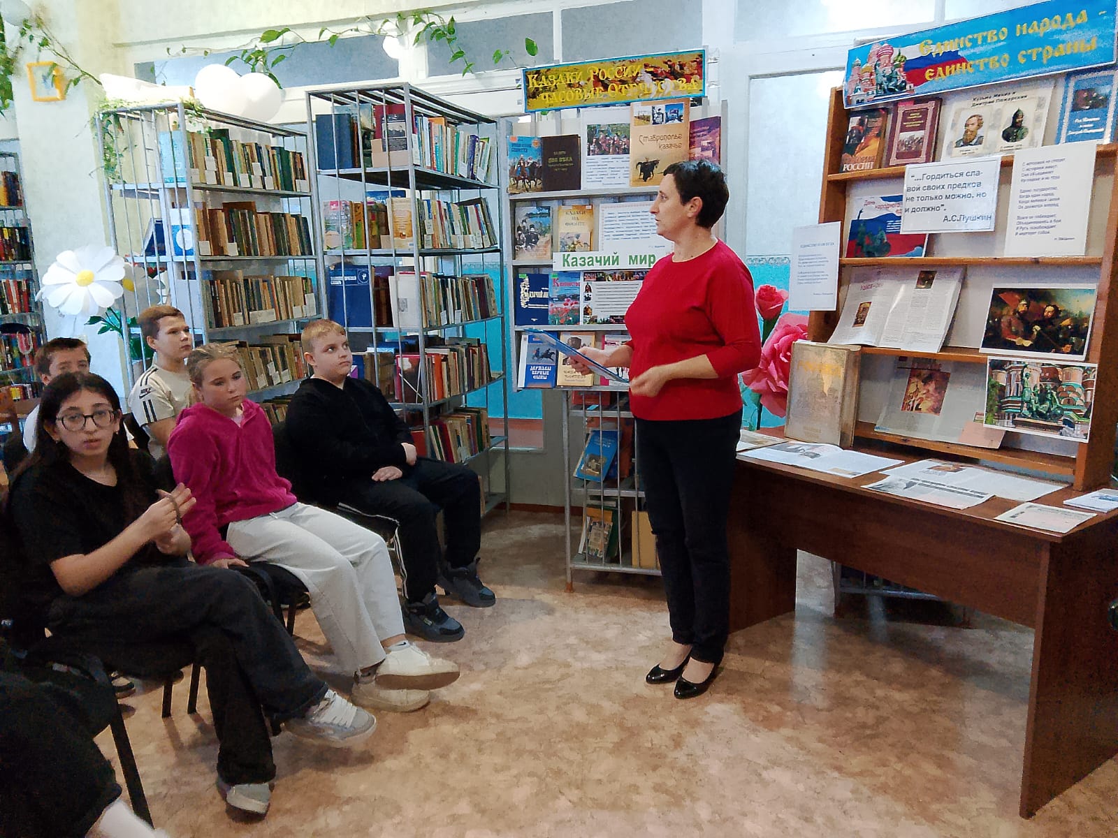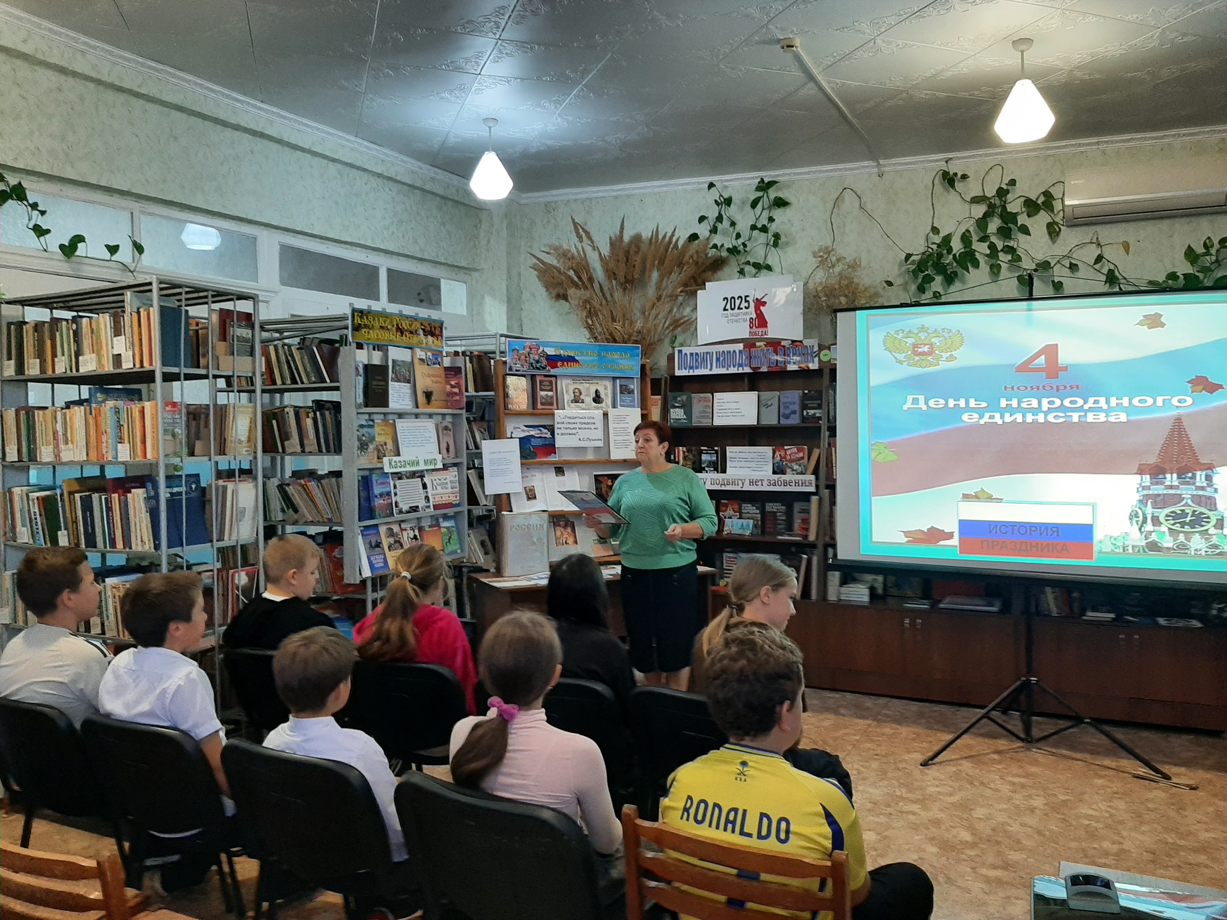 Патриотический экспресс «От воинской славы – к единству народа» познакомил с историей возникновения праздника Дня народного единства. Ребята узнали, о том, кто организовал народное ополчение: о его главных героях – Минине и Пожарском, о том, какую роль оно сыграло в победе русского народа над польскими интервентами, а также об удивительной силе Казанской иконы Божией Матери, которой отводится не менее важная роль в нашей победе. Мероприятие сопровождалось показом медиа-презентации «4 ноября – День народного единства». Волонтер прочла стихи Н.Майданик об этом празднике и вручила информационный буклет «В единстве – наша сила». Особым вниманием ребят пользовалась литература, представленная на выставке-хронике «Единство народа – единство страны».