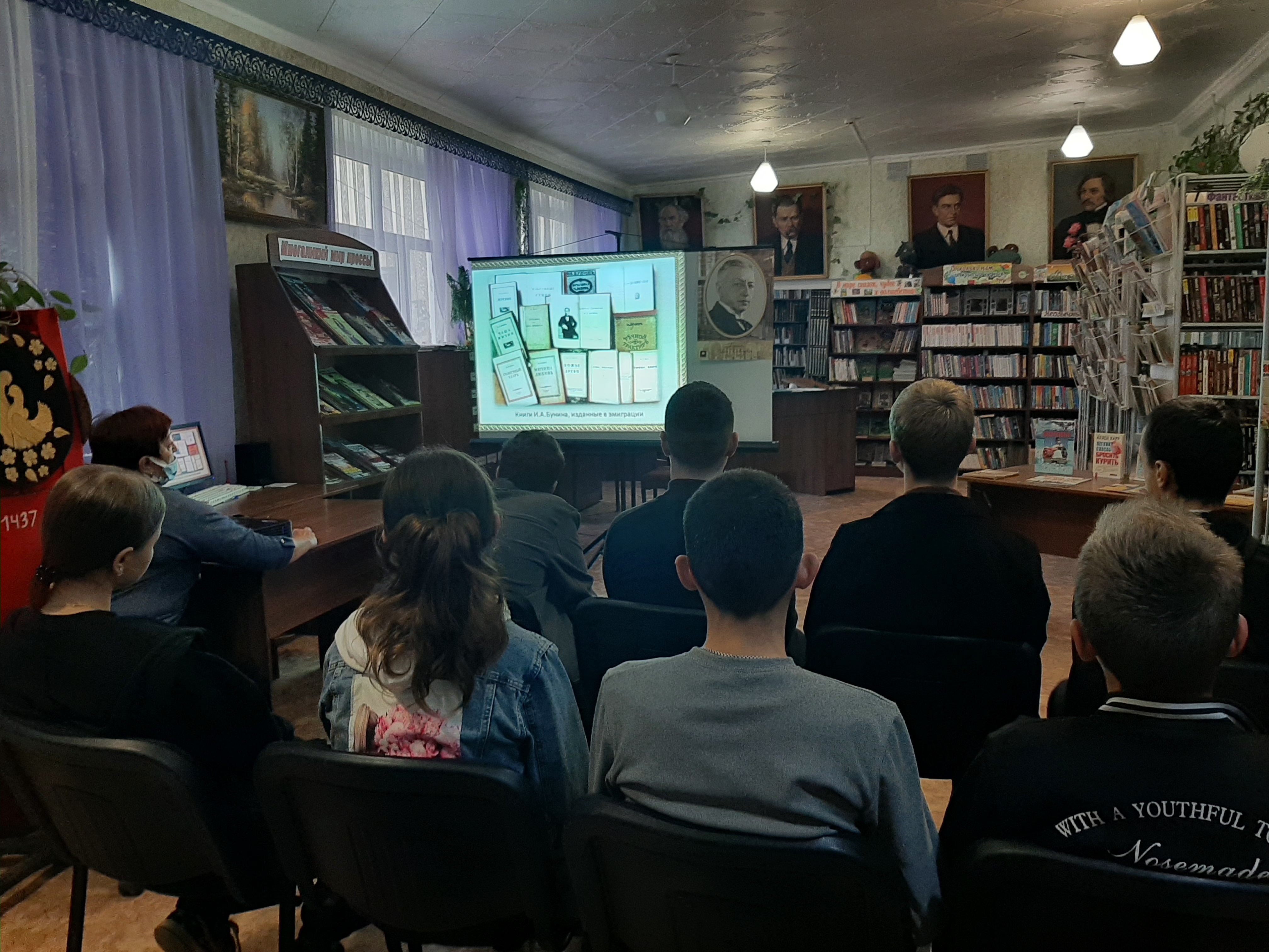 К 150-летию со дня рождения известного русского поэта и писателя, лауреата Нобелевской премии в области литературы Ивана Алексеевича Бунина подготовили литературную гостиную «Бунинская звонкая строка». На мероприятии звучали стихи И. Бунина и отрывки из его художественной и мемуарной прозы. Ребята узнали много интересного из жизни семьи Буниных, о его детстве, о том, как формировалось литературное мировоззрение писателя. Раскрыть глубину мысли, богатство языка и мастерство повествования, различные жанры и темы писателя помогла раскрыть медиа-презентация «Иван Алексеевич Бунин: биография и характеристика творчества»