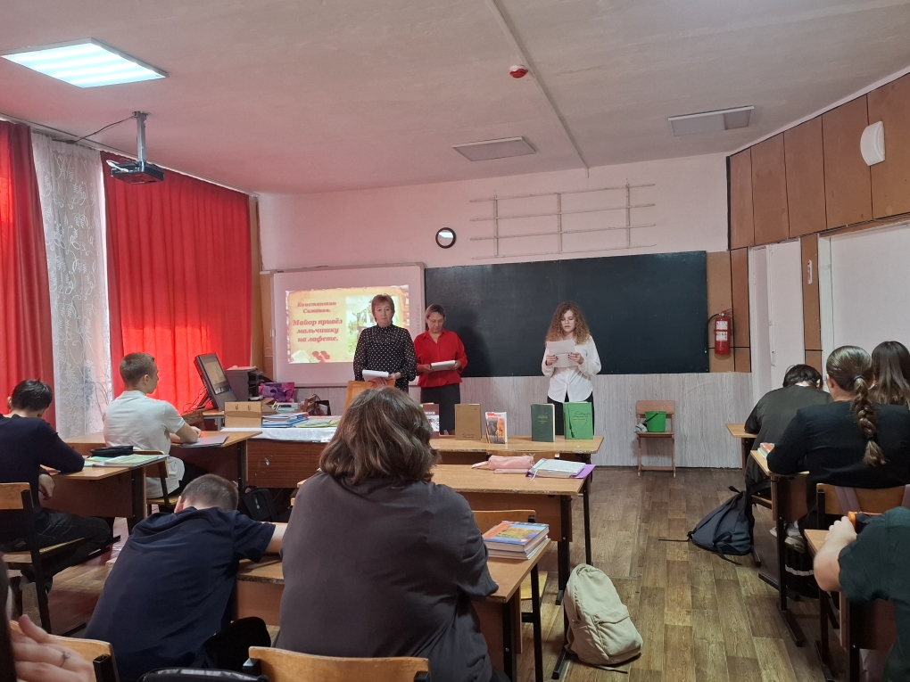 27 октября сотрудниками центральной библиотеки села Дивное в МКОУСОШ №1 для 9 «А» класса (препод. Лагодич М.Н.) был проведен литературный вечер «Константин Симонов – писатель-фронтовик», посвящённый поэтическому искусству и памяти великого поэта и писателя. В рамках этого события школьники имели уникальную возможность не только услышать рассказы о жизни и творчестве Симонова, но и принять участие в чтении его стихов.