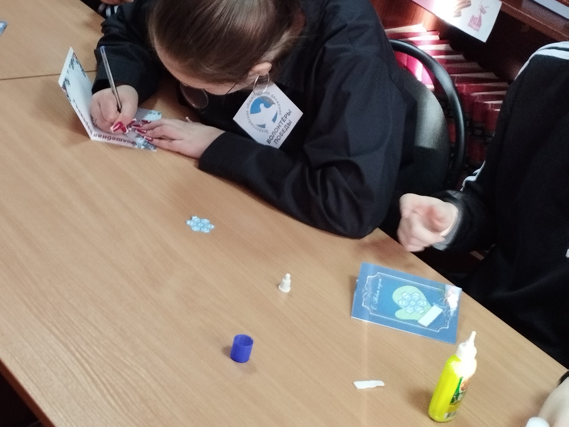 Сельская библиотека совместно с участниками Движения Первых и волонтёрами культуры приняла участие во Всероссийской акции «Новый год в каждый дом», приуроченной к празднованию Нового года. Став участниками мастер-класса «Варежки чудес: создаём новогодние открытки», ребята с помощью библиотекарей изготовили новогодние открытки «Волшебные варежки» для своих сверстников из детского лома села Дивного. Яркие открытки с тёплыми пожеланиями счастливого нового года согреют сердца детей и создадут праздничное новогоднее настроение.