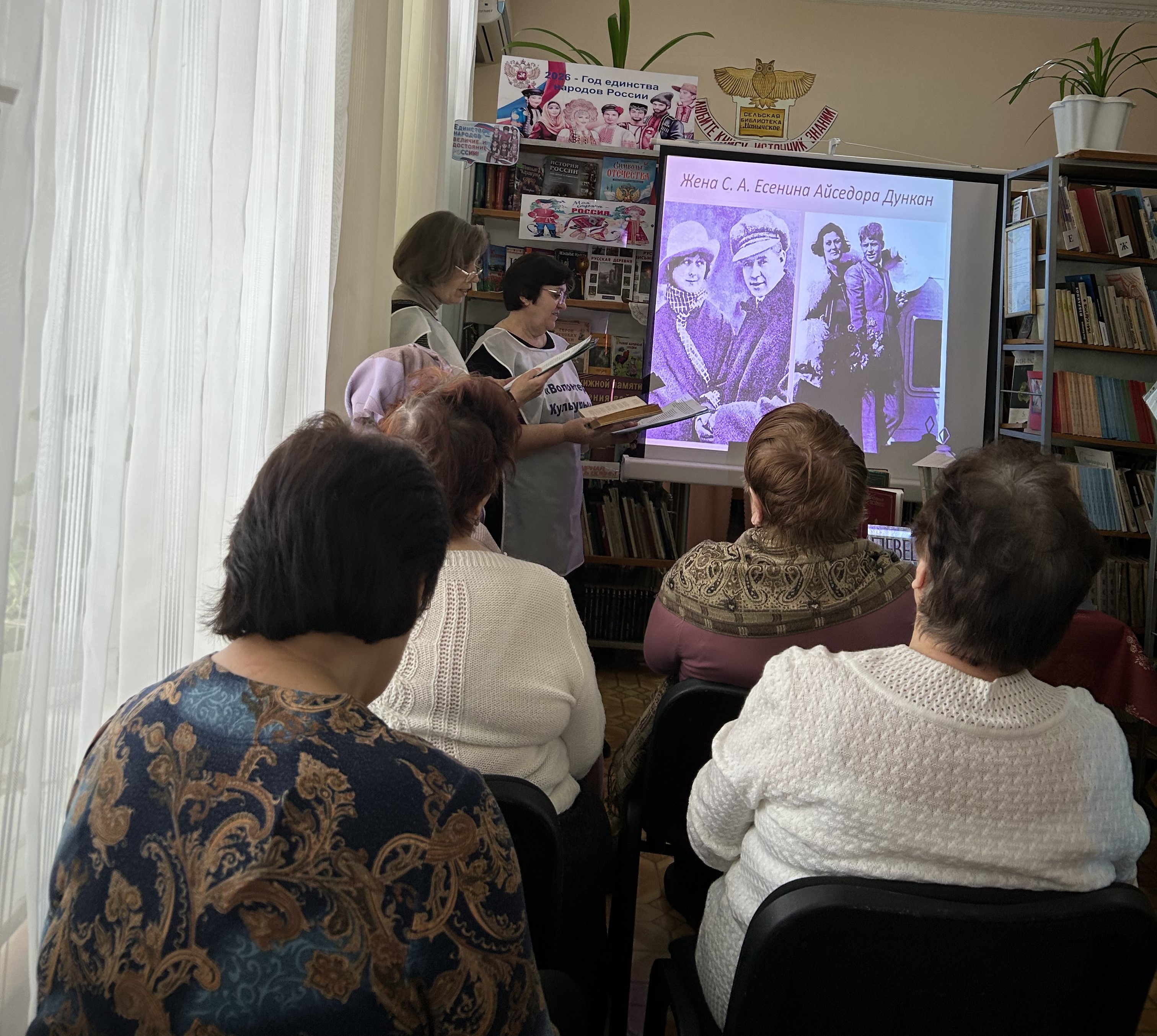 Поэтический вечер «И песнь есенинская льётся " прошёл в уютной атмосфере библиотеки, собрав вокруг себя читателей клуба " Селяночка" — ценителей поэзии и культуры. Пространство было украшено книгами Сергея Есенина, создавая атмосферу погружения в мир русской литературы начала XX века. Ведущие— волонтёры культуры приветствовали гостей тёплыми словами, отметив особую роль творчества Есенина в сердцах многих поколений россиян. Они напомнили присутствующим о важности сохранения культурных традиций и уважения к классикам отечественной словесности. Литературные сотрудники провели небольшой обзор жизни и творчества великого русского поэта. Участники узнали интересные факты о его детстве, юности, творчестве и влиянии на литературу своего времени.Видео ролики песен на стихи С.Есенина добавили мероприятию особого очарования. После основной части мероприятия участники могли свободно общаться друг с другом, делиться впечатлениями и воспоминаниями. Библиотекарь организовала чайную церемонию, создав ещё большую атмосферу тепла и душевности. Мероприятие стало настоящим праздником поэзии и дружбы, пробуждая интерес к литературному наследию страны.