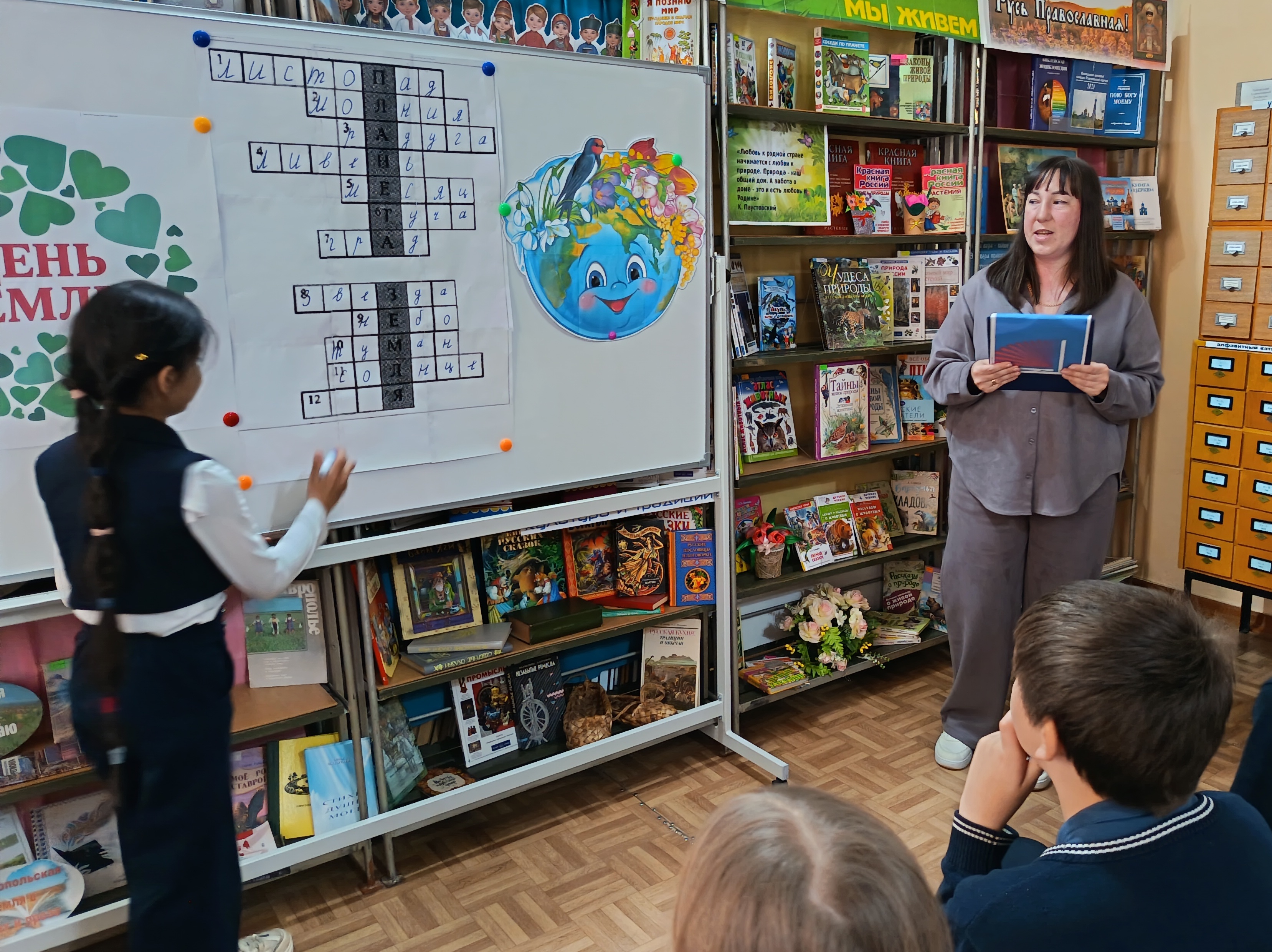 В библиотеке села Вознесеновского для учащихся четвёртых классов (классные руководители Багамаева П.Г. и Вакуленко С.И.) прошла интеллектуально - развлекательная игра «Чудеса Земли - матушки», посвящённая Международному Дню Земли. В начале встречи библиотекари познакомили ребят с историей этого важного экологического праздника, напомнив о необходимости беречь и сохранять природу. Однако теория - лишь начало. Основная часть мероприятия превратилась в настоящее интеллектуальное приключение. Ребята отправились в путешествие по пяти станциям, на которых их ждали самые разные задания. Они узнали о чудесах природы, ломали голову над сложным кроссвордом, отгадывали хитрые загадки и вспоминали мудрые народные приметы. Но на этом праздник не закончился! В творческом порыве школьники вместе нарисовали на доске яркий плакат «Здоровье планеты в наших руках». А на память о встрече каждый унёс с собой полезный буклет «Наш дом – Земля».