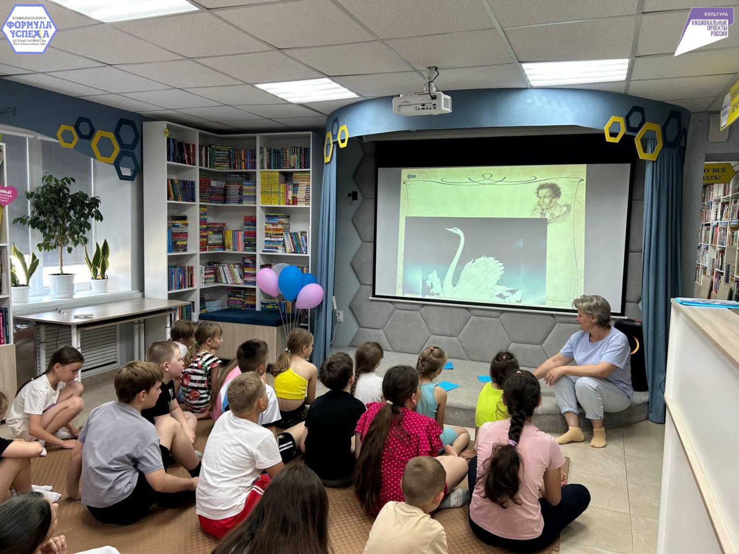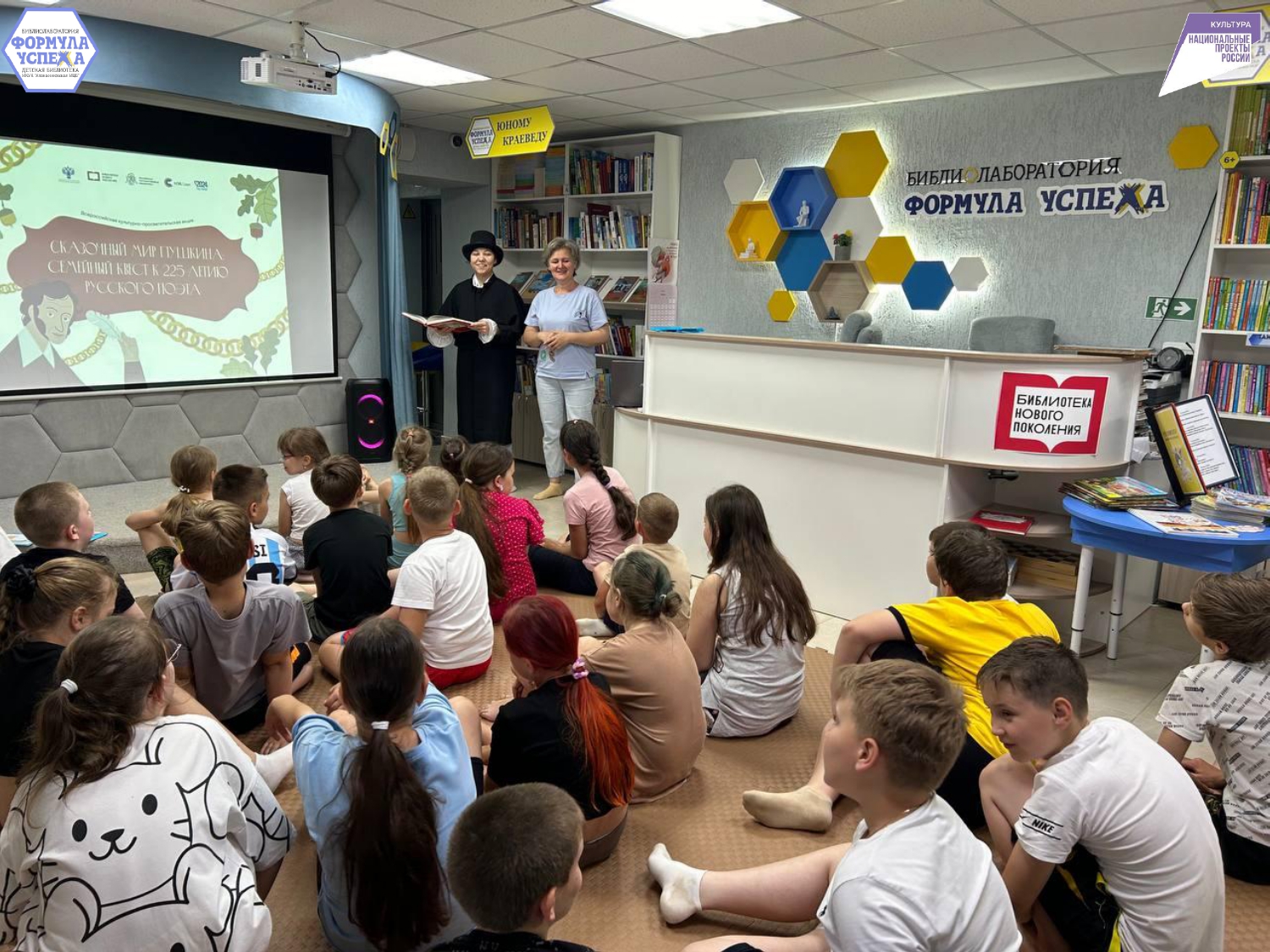 6 июня в рамках Всероссийской культурно-просветительской акции «Сказочный мир Пушкина: квест к 225-летию русского поэта» в Библиолаборатории «Формула успеха» прошло мероприятие «За учёным котом в сказку Пушкина пойдём!».
