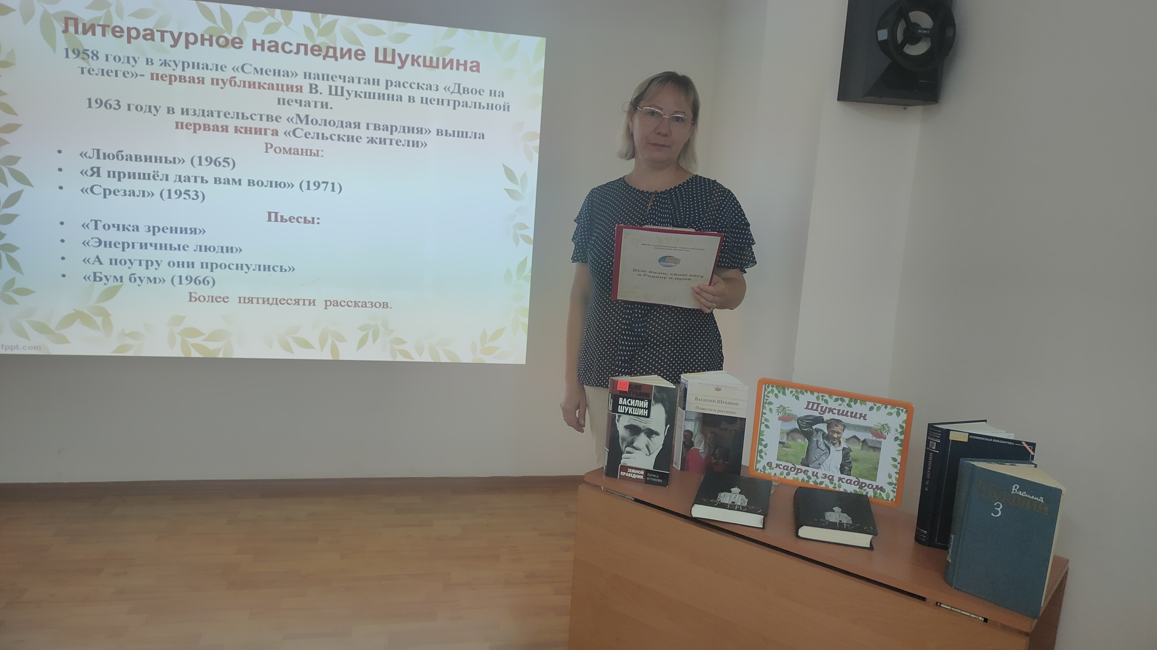 Участникам мероприятия были представлены известные произведения, сборники рассказов Василия Шукшина, а также литература о его жизни и творчестве в качестве писателя, актера и режиссера.