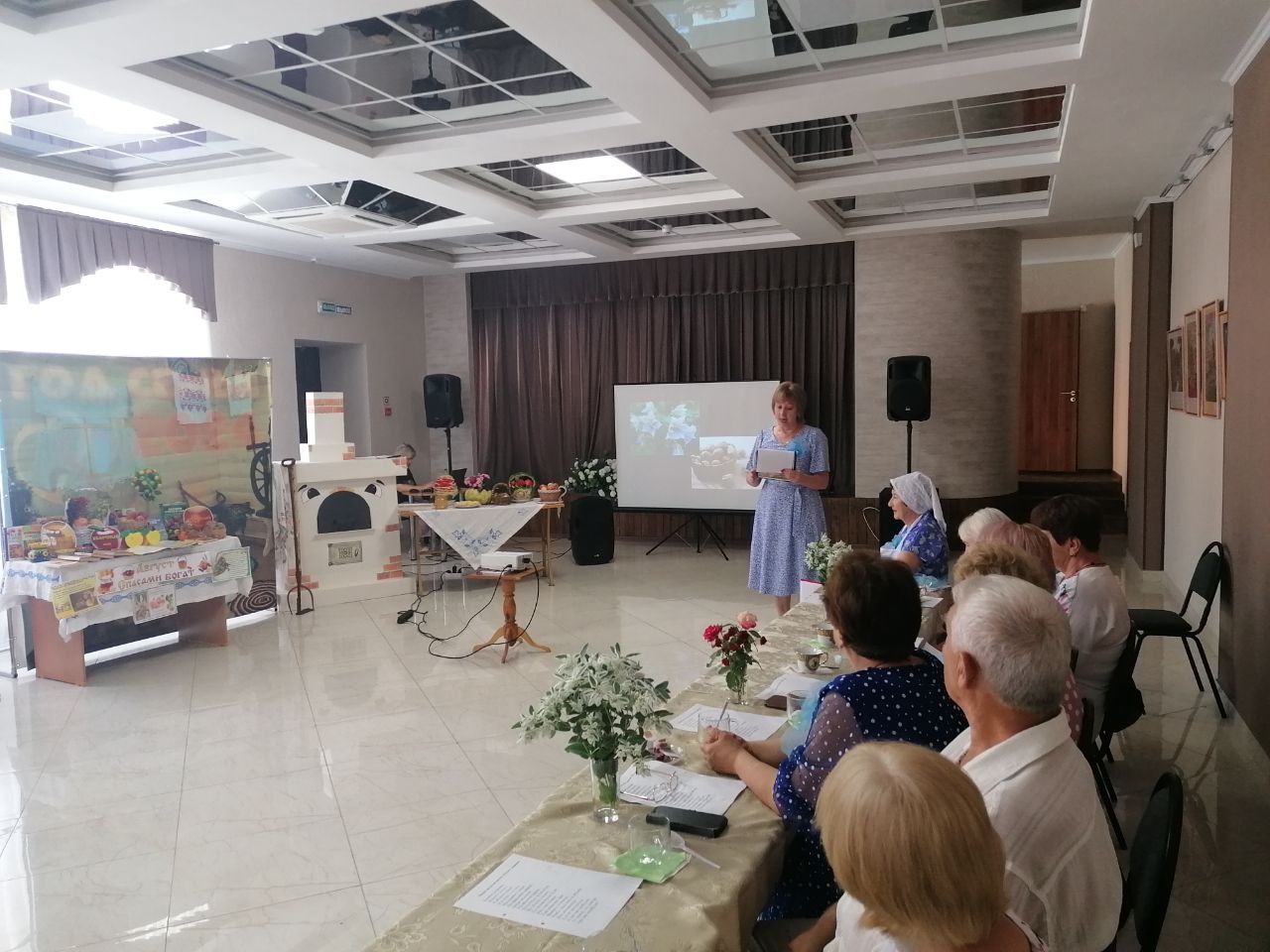 В этот день в центральной библиотеке с. Дивного состоялось очередное заседание клуба по интересам для пожилых людей «Добрые встречи» и участников «Всероссийского общества инвалидов». Сотрудники библиотеки провели литературно-яблочные посиделки «Яблочный Спас не пройдет без нас». Из рассказа ведущей и «кумушек» роли которых исполнили участницы клуба: Лидия Шевченко, Светлана Фаюстова, присутствующие узнали об истории праздника и о традициях, присущих ему.