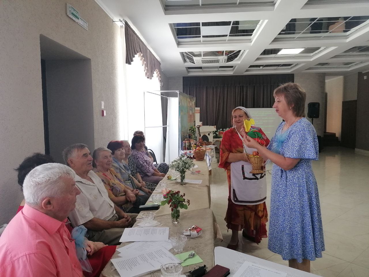 Отдельный рассказ был посвящён самим яблокам. Гости узнали, откуда родом этот фрукт, каких сортов бывают яблоки и какими витаминами они богаты. Тему щедрого урожая, воспетого в стихах, частушках поддержали гости, из уст которых прозвучали замечательные образцы русской поэзии и фольклора.