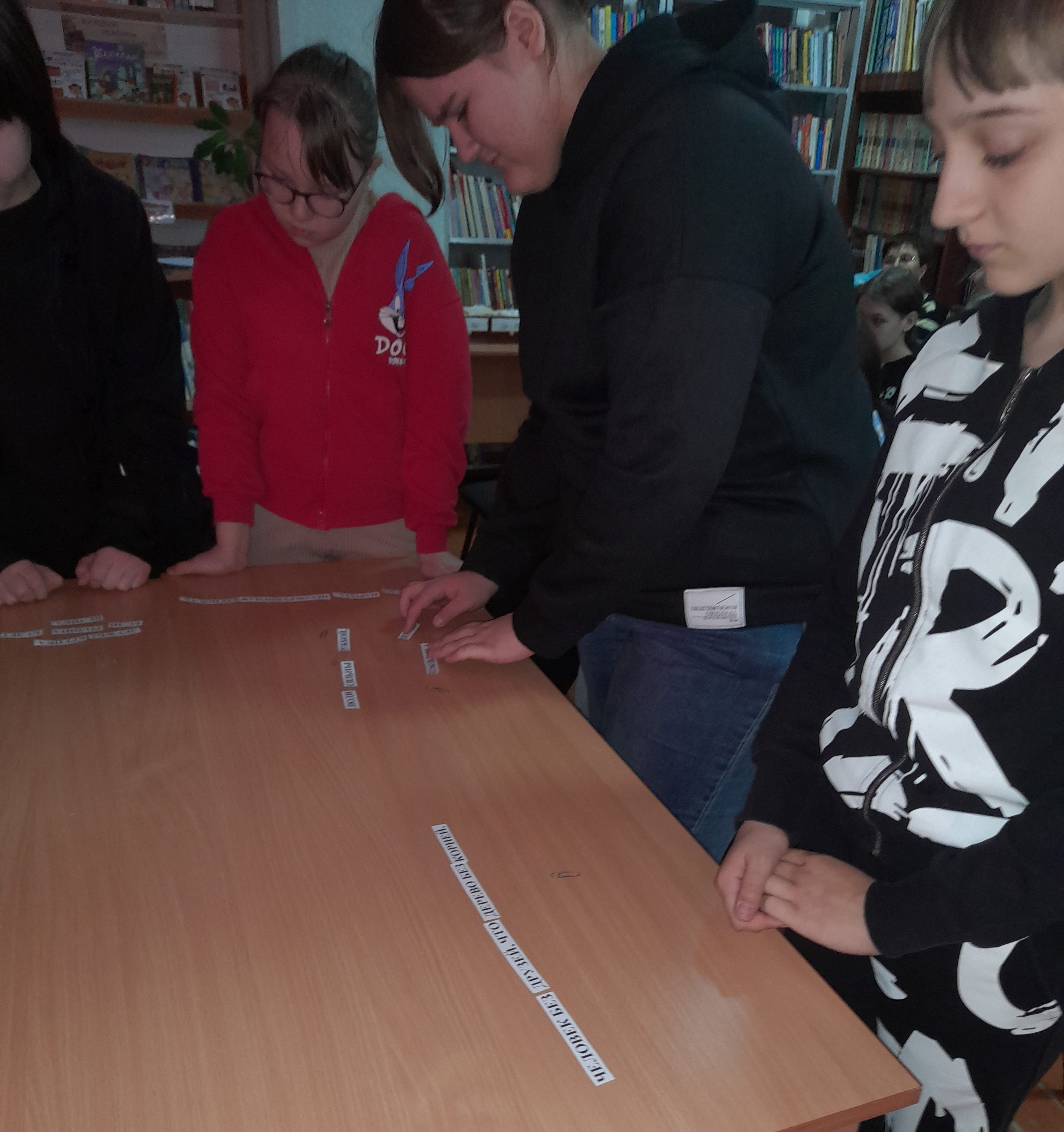 Не меньший интерес вызвала у гостей библиотеки фольклорная станция «Поговорка – цветок, пословица – ягодка». Выполняя интересные задания, составляя в единое целое пословицы, выясняя значение поговорок, отгадывая интерактивные загадки разных народов России, ребята смогли проявить смекалку и мудрость.
