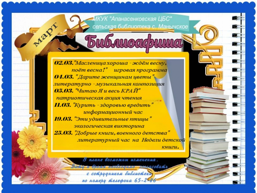 Последнее от Библиотека с.Манычское